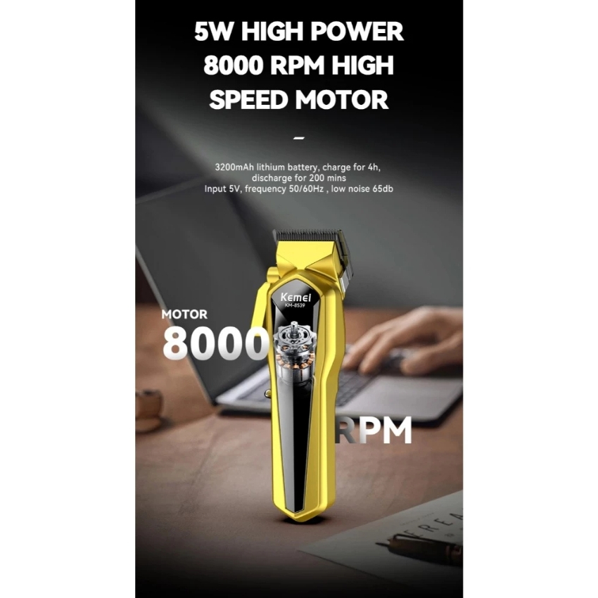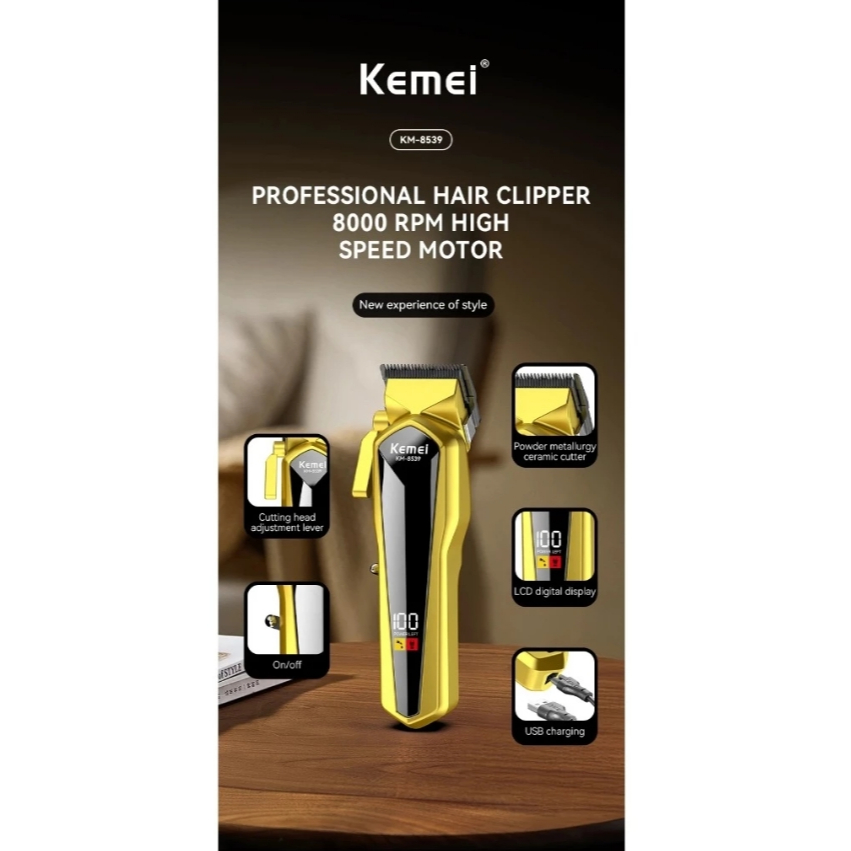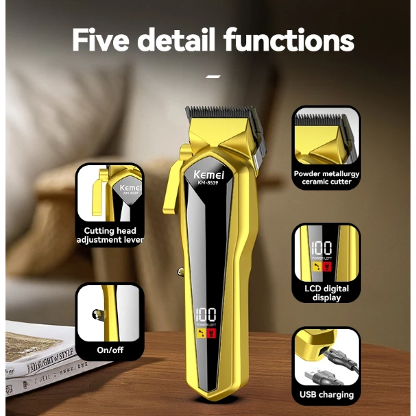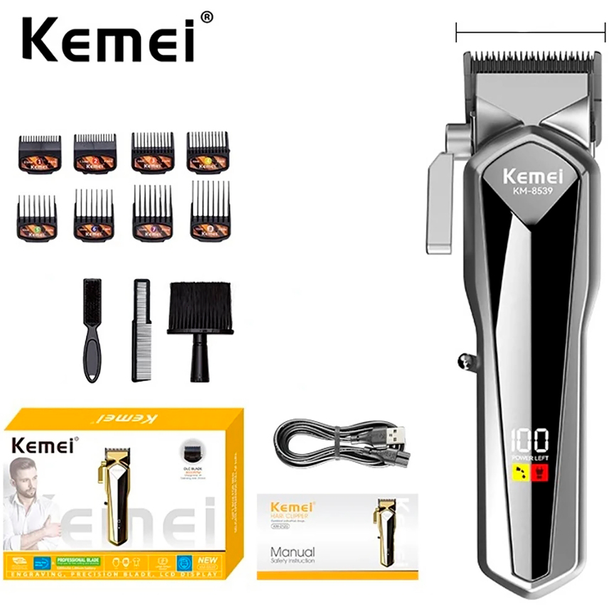Kemei 8539 Máquina De Cortar Cabelo Masculino Profissional Sem Fio Recarregável Aparador Display LED