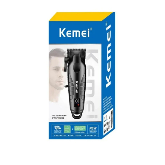 Máquina de Cortar Cabelo Profissional KEMEI -2290 Portátil Usb Display LCD 110V / 220V 6 Pentes Nova