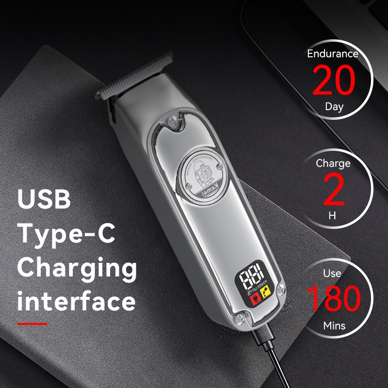 Kemei KM 2831 Máquina De Corte De Barbeiro De Metal Carreento Digital USB Mini Design Corpo De Metal
