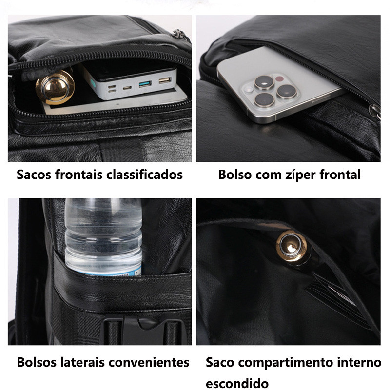 mochilas de costas masculinas feminina de couro grande reforçada para notebook e viagem