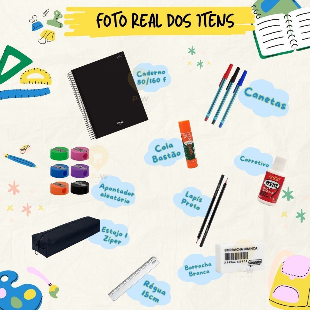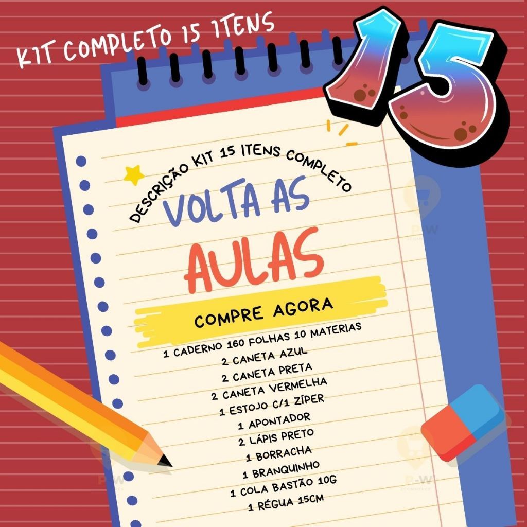 Kit 15 Itens Material Escolar Completo Volta Ás Aulas Universitário Ensino Médio