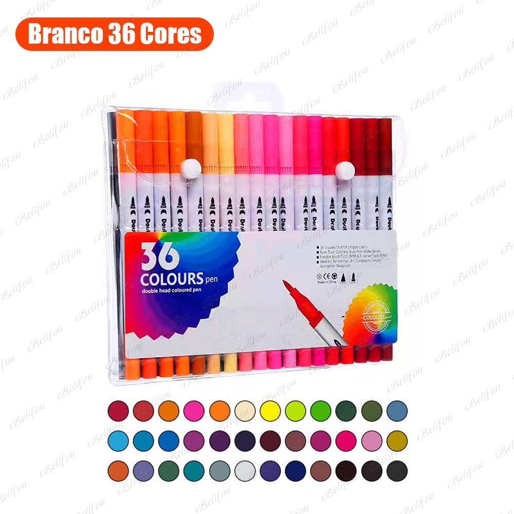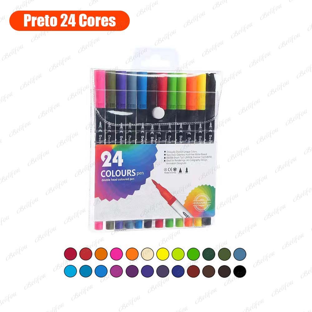 12/24/36/60 Kit Caneta 2 em 1 Brush Lettering e Ponta Fina Dual Pen Canetinha Colorir Desenho