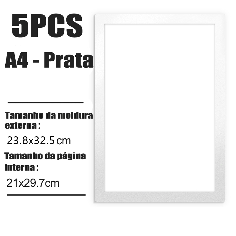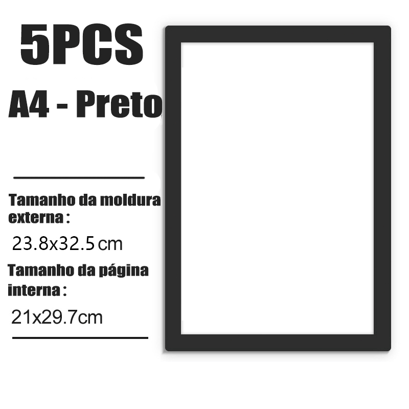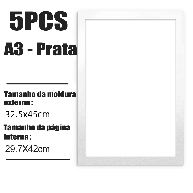 Conjunto 5 Molduras Magnéticas Portáteis A3/A4 Preto/Prata Para Parede e Metal