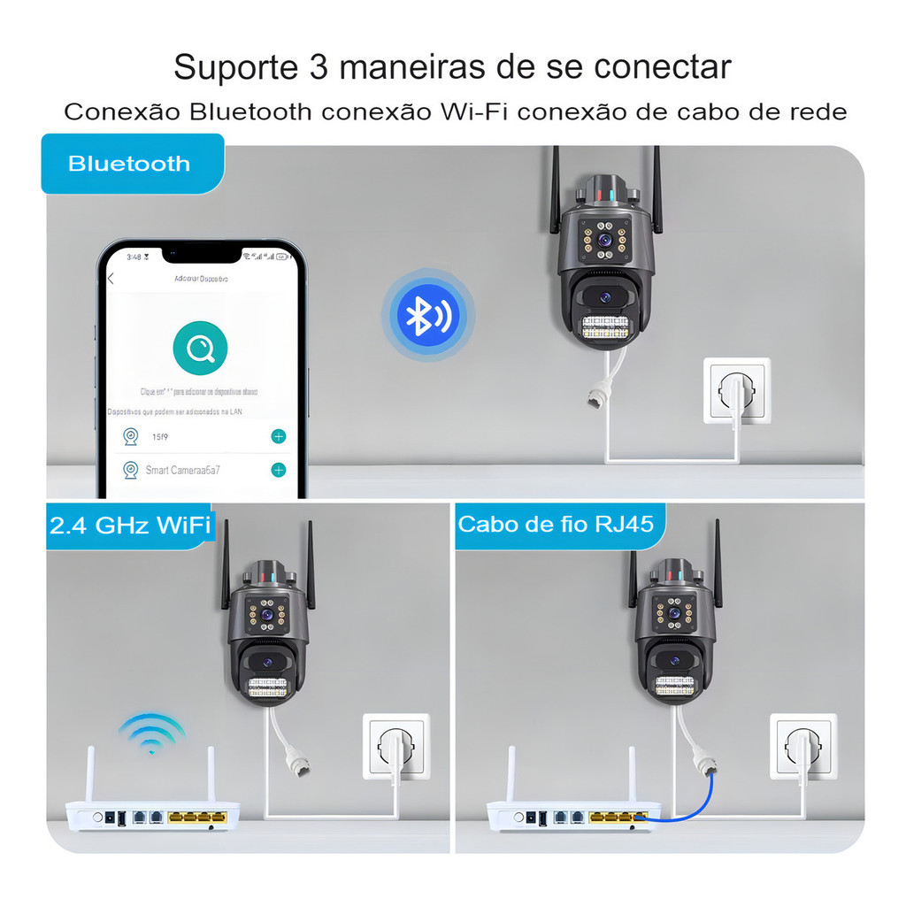 Kit 2 Câmera Segurança Ip App Icsee Lente Dupla Cor Preto