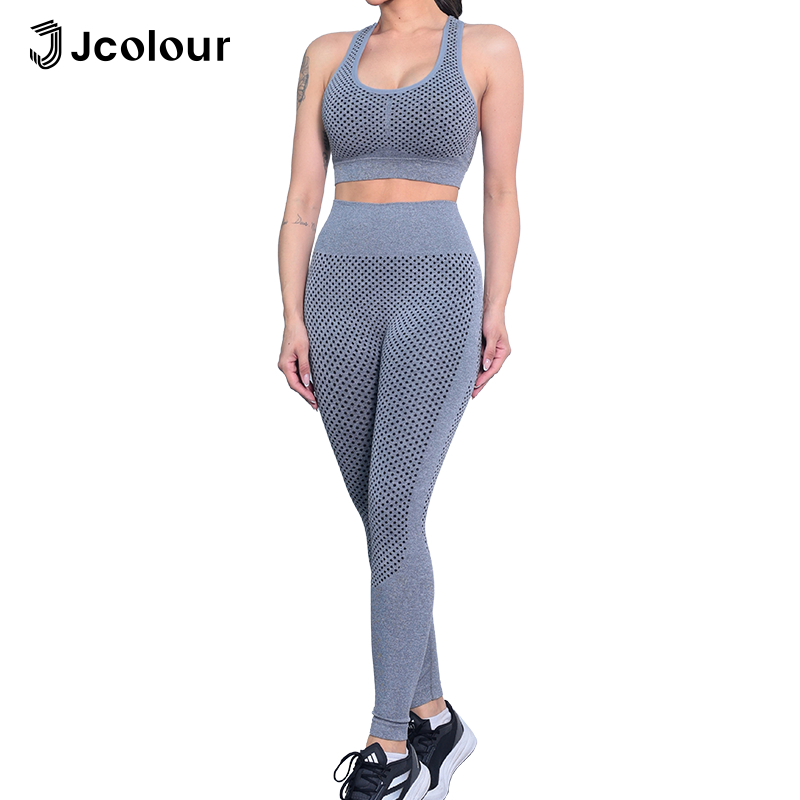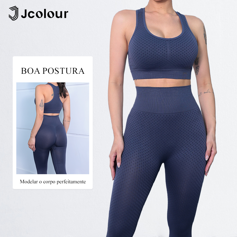 Jcolour Conjunto Esportivo Academia Feminina Top e Legging Cintura Alta Levanta Bumbum