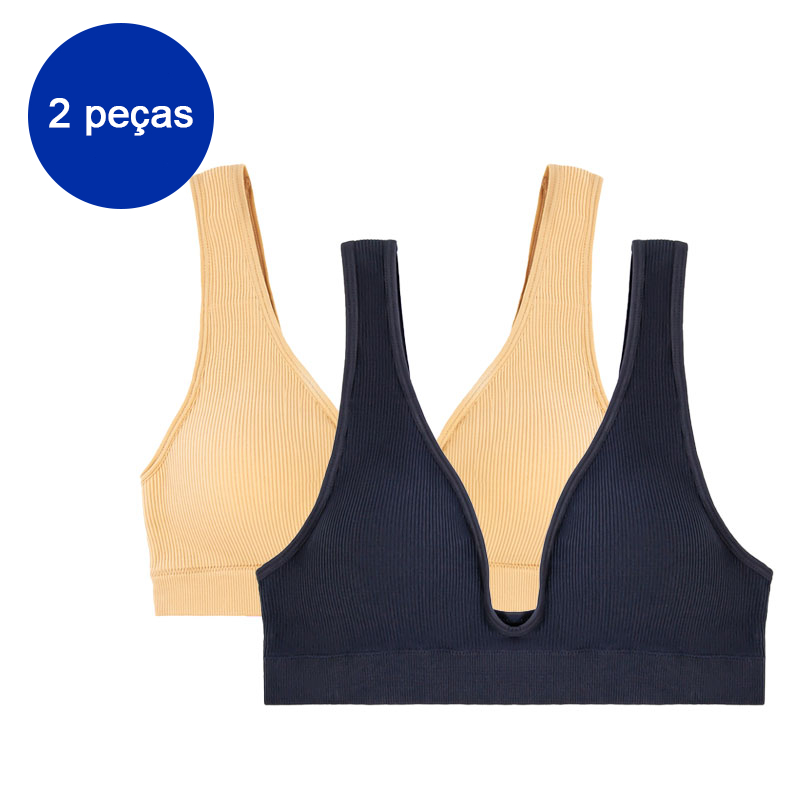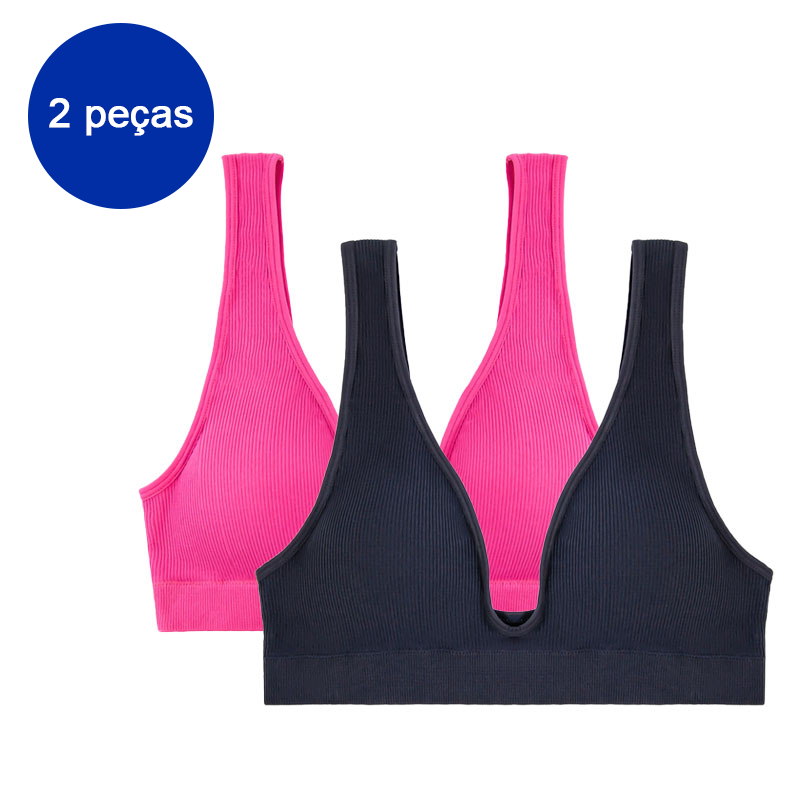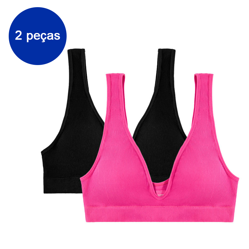 Jcolour Kit 2 Sutiã Esportivo Sem Costura Sexy Sem Aro Sem Marcas com Efeito Push Up eCostas Bonitas
