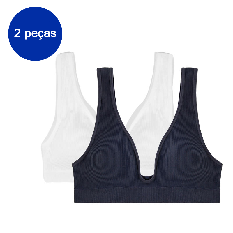 Jcolour Kit 2 Sutiã Sexy Sem Costura com Bojo Confortável Alta Elastico e Decote Profundo em V