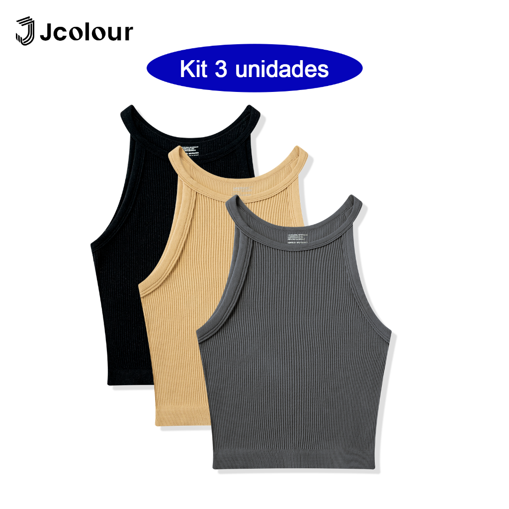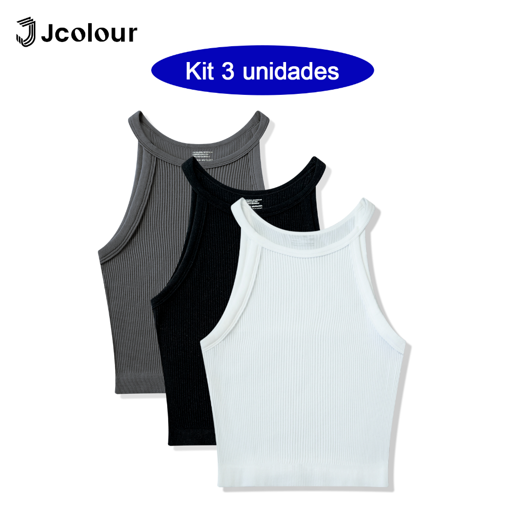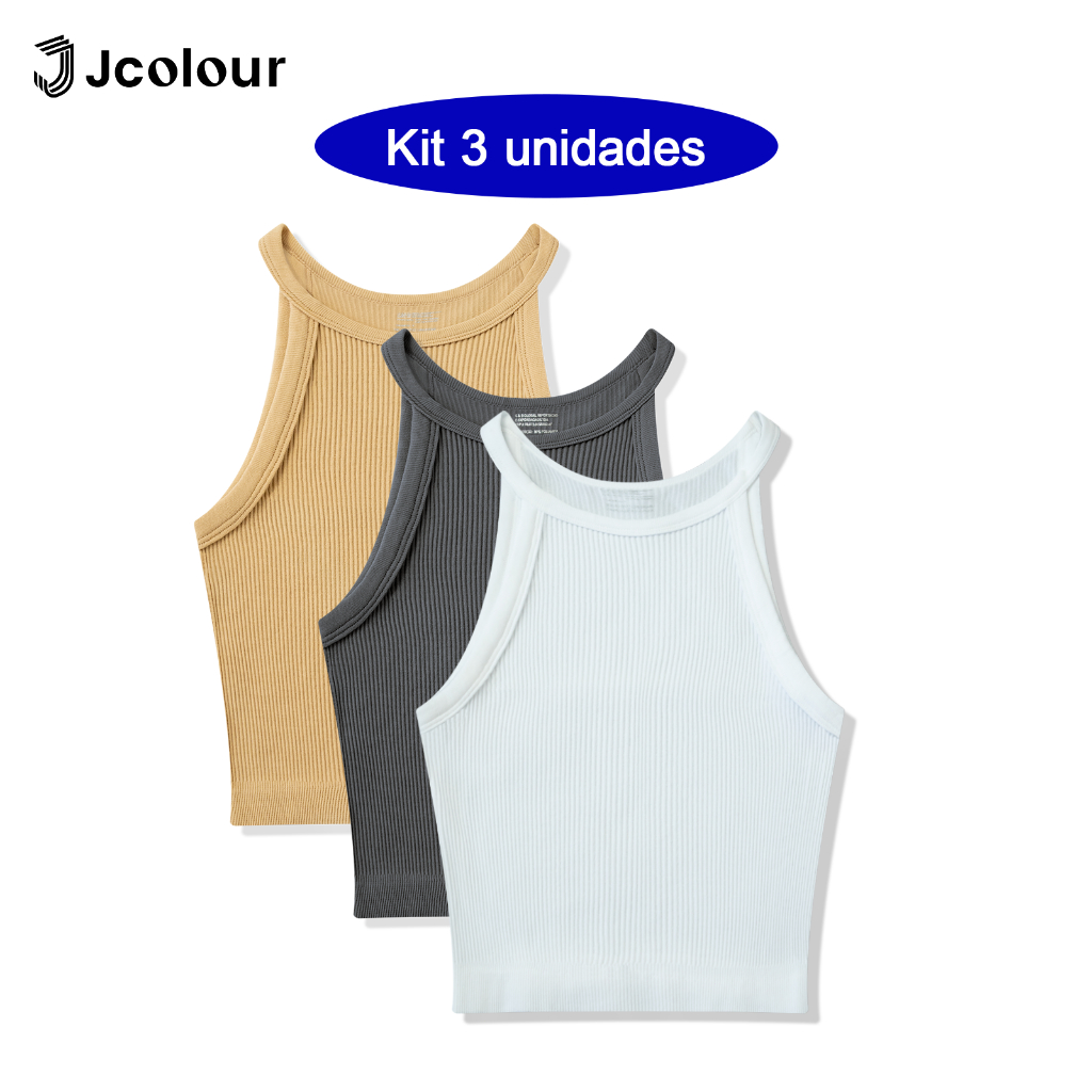 Jcolour Kit 3 Blusinha Feminina Básica Canelada Tendência de Verão para Yoga Pilates Fitness Corrida