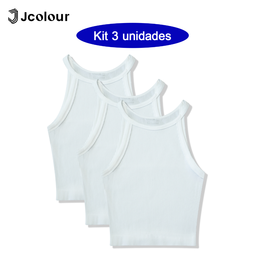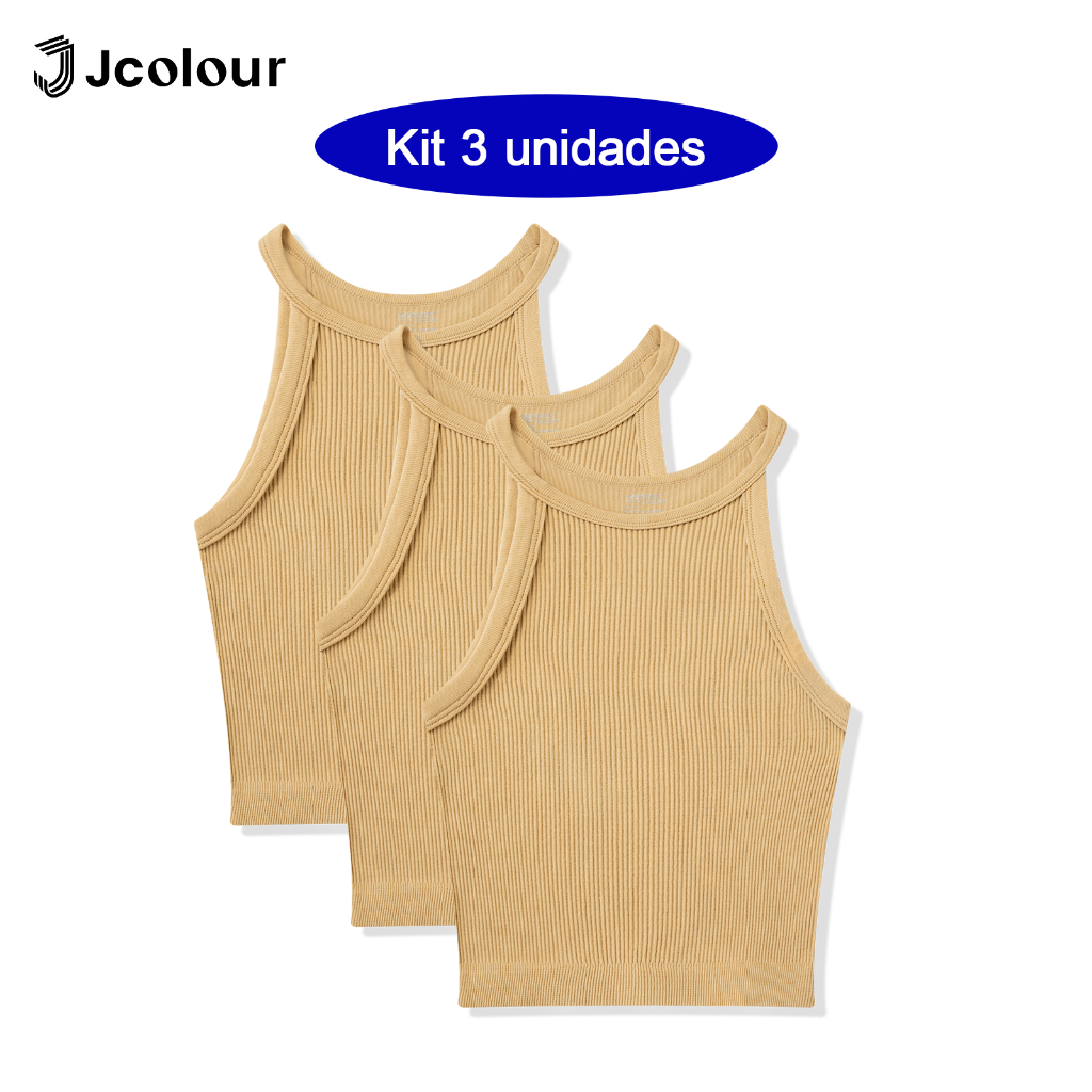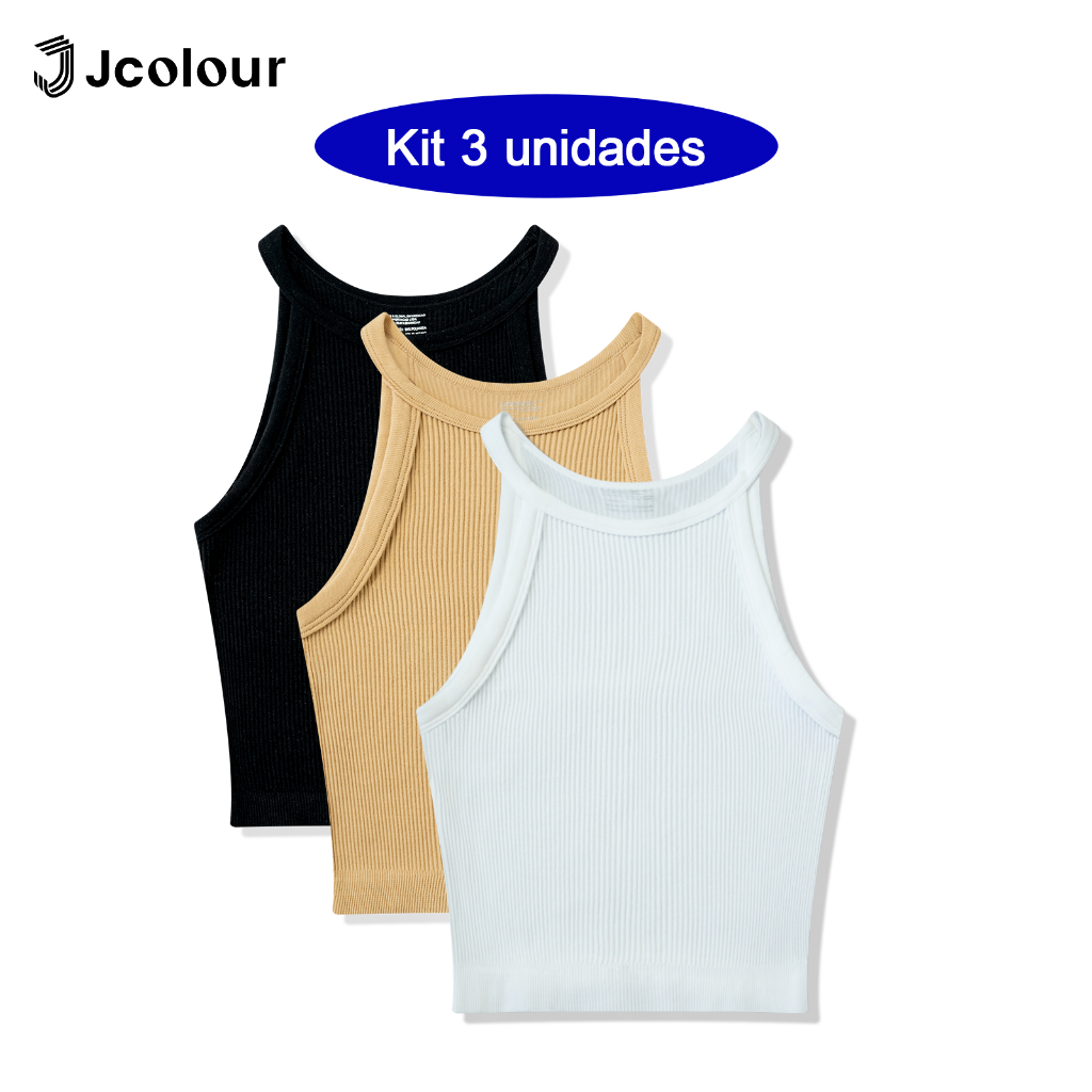 Jcolour Kit 3 Blusinha Feminina Básica Canelada Tendência de Verão para Yoga Pilates Fitness Corrida