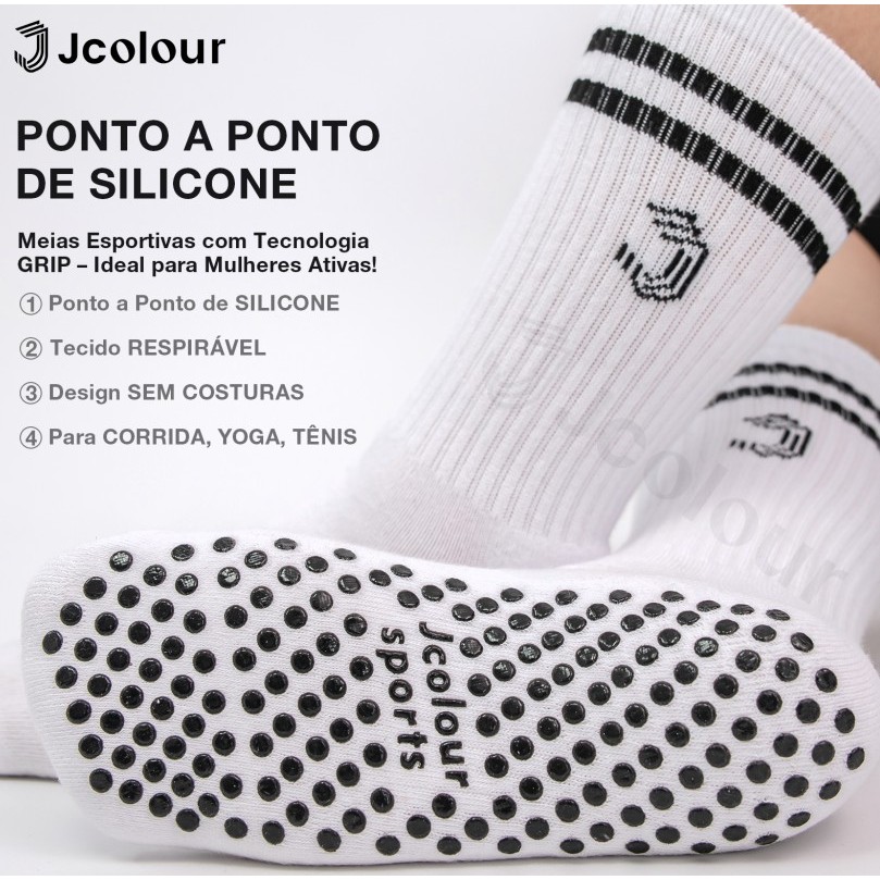 Jcolour Kit 3 Meias Femininas Antiderrapantes Para Ioga De Pilates E Treino Fitness Almofada Alta