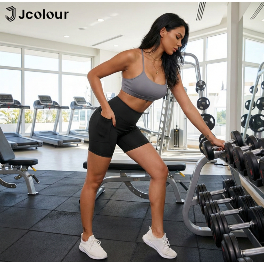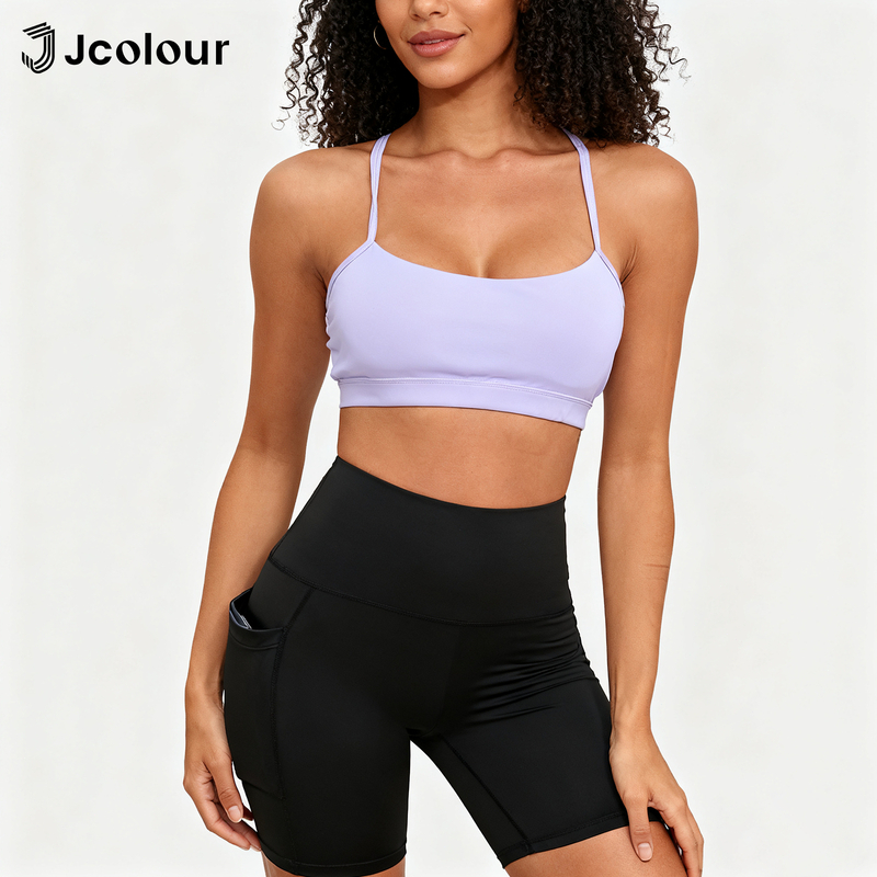 Jcolour Conjunto Academia Feminino Fitness Shorts e Top de Alça Zero Transparência