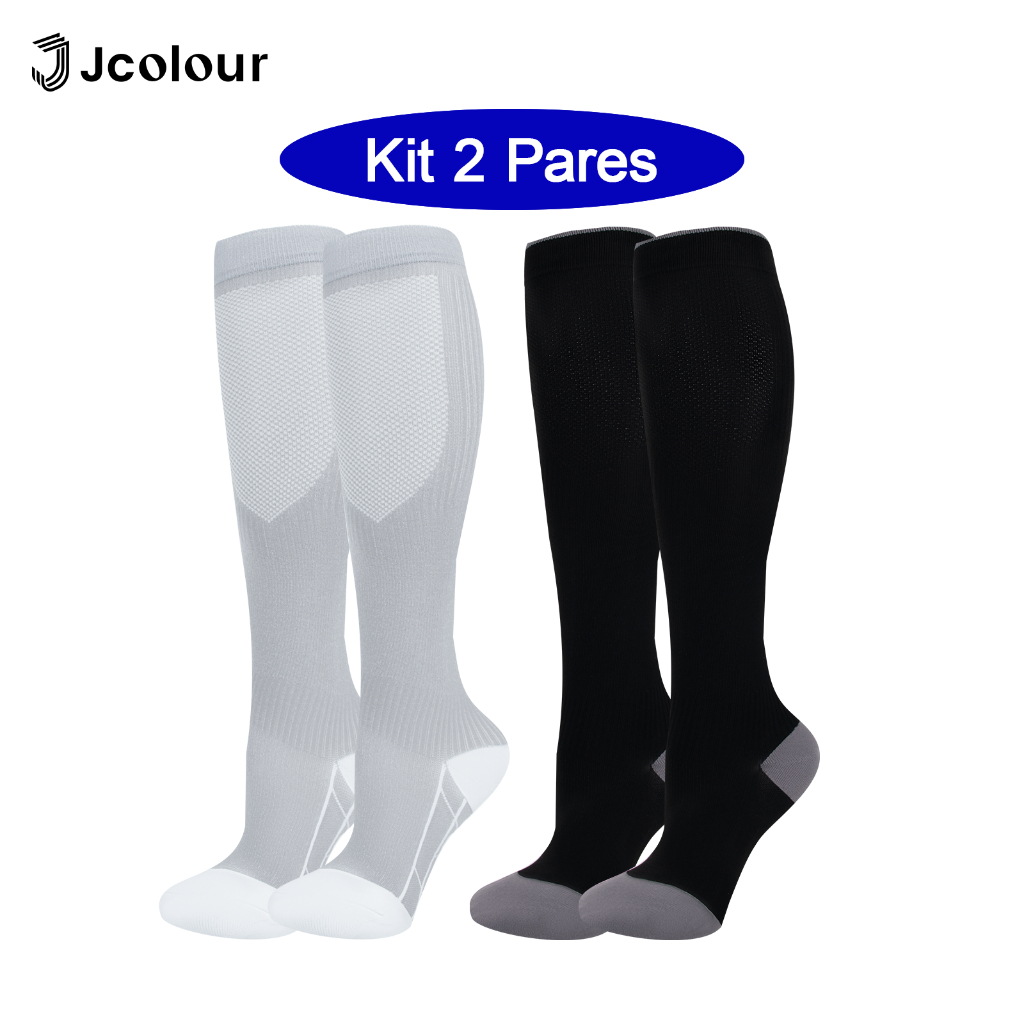 Jcolour Kit 2 Pares Meias de Compressão para Mulheres e Homens 20-30mmHg Suporte para Circulação