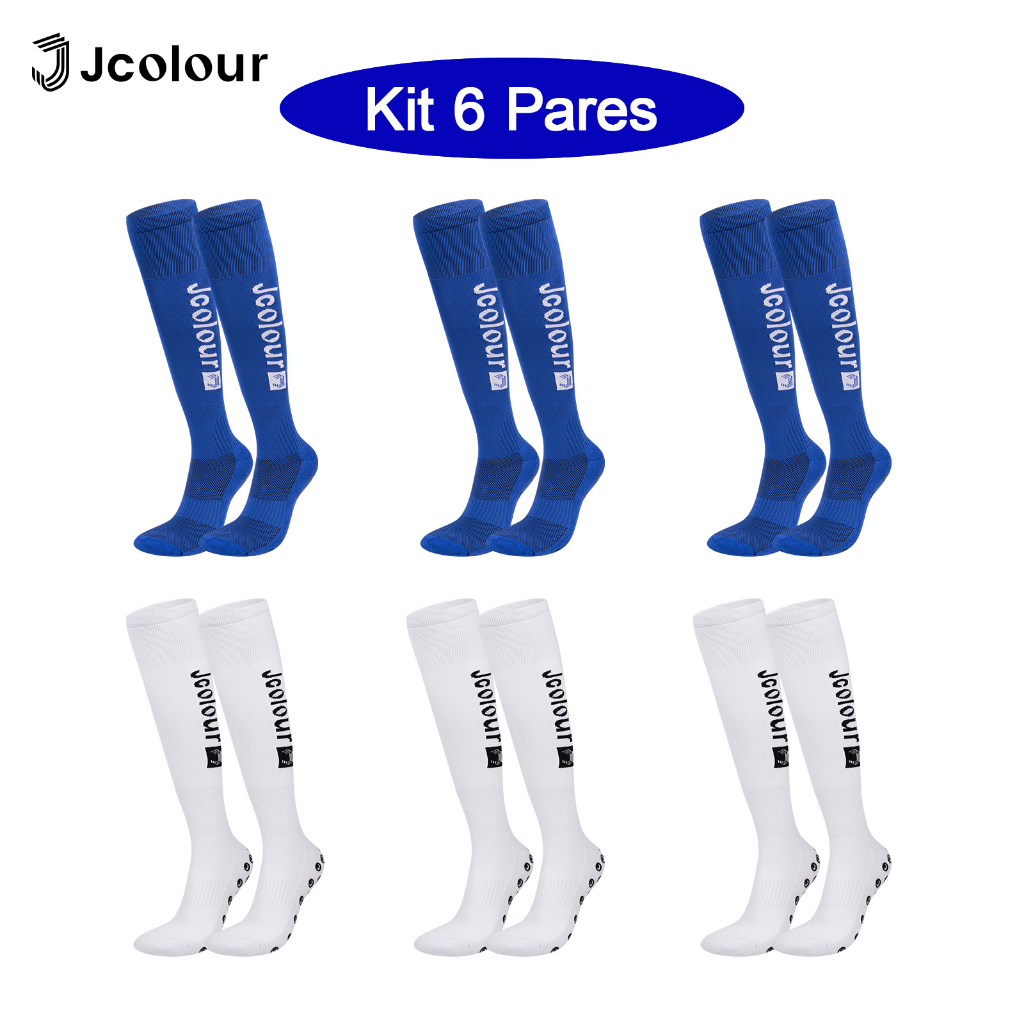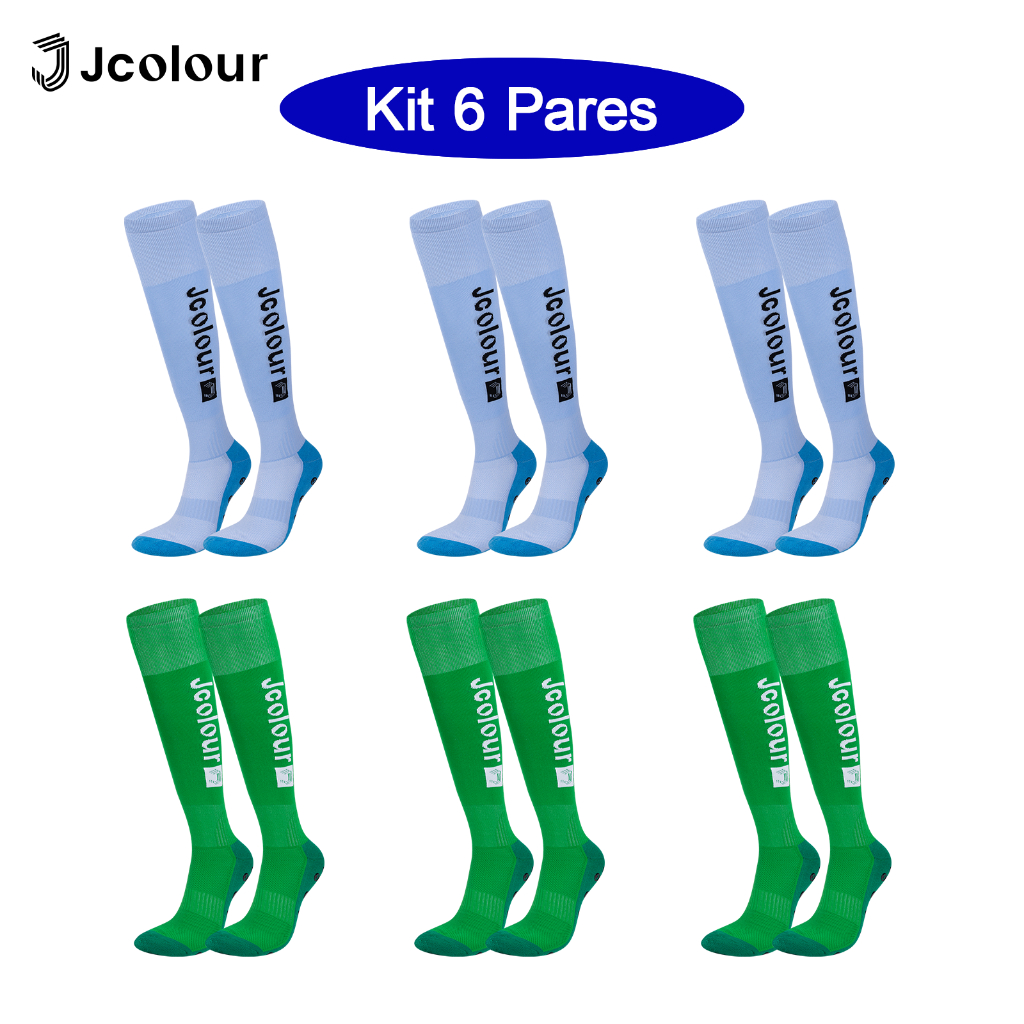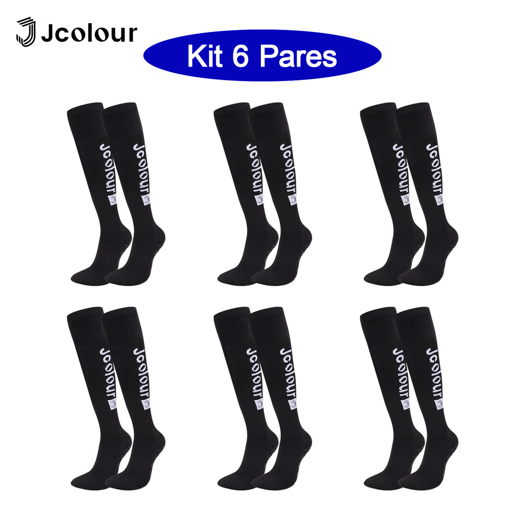 Jcolour Novo Kit 6 Meião de Futebol Antiderrapante Esportiva Respirável Longas Alta Qualidade
