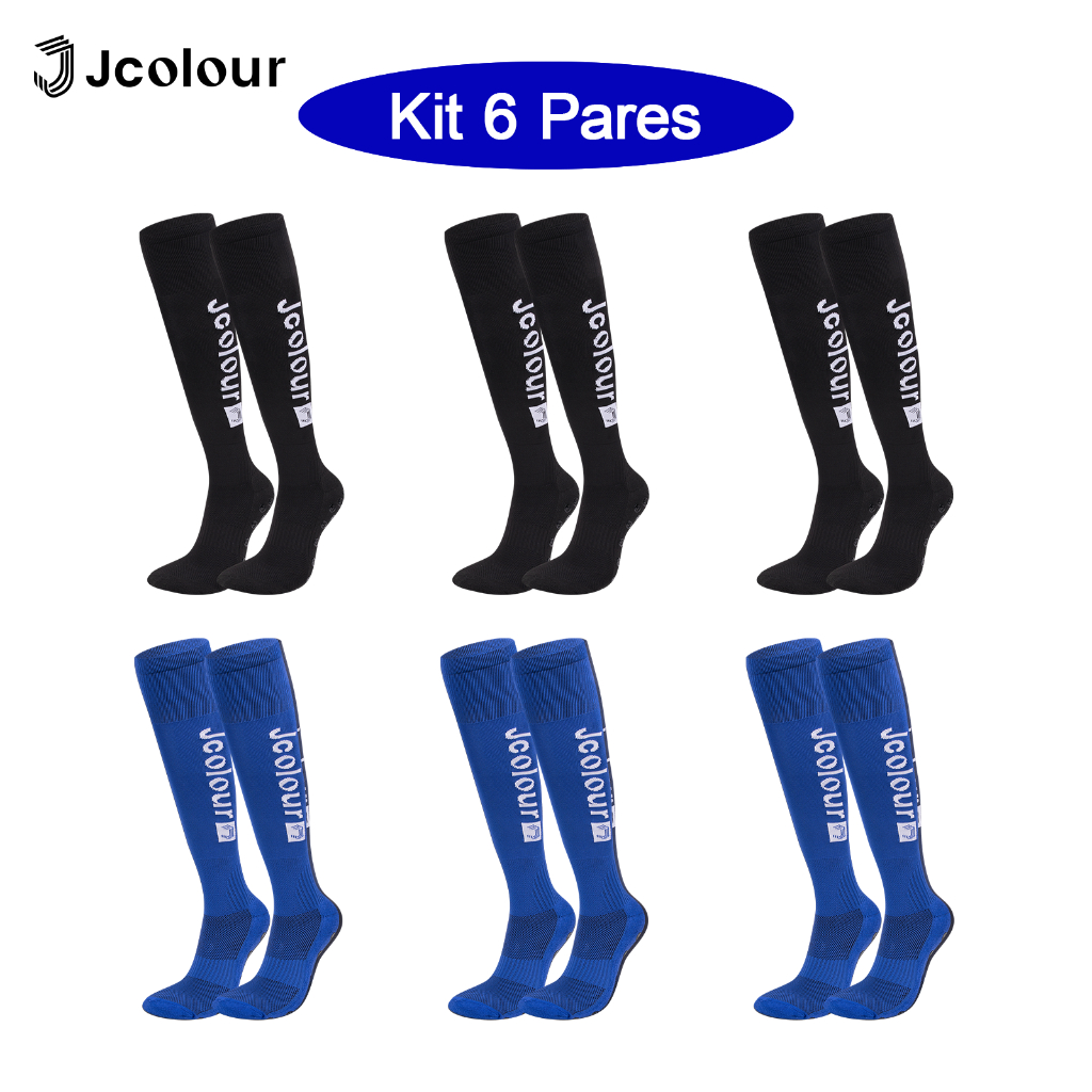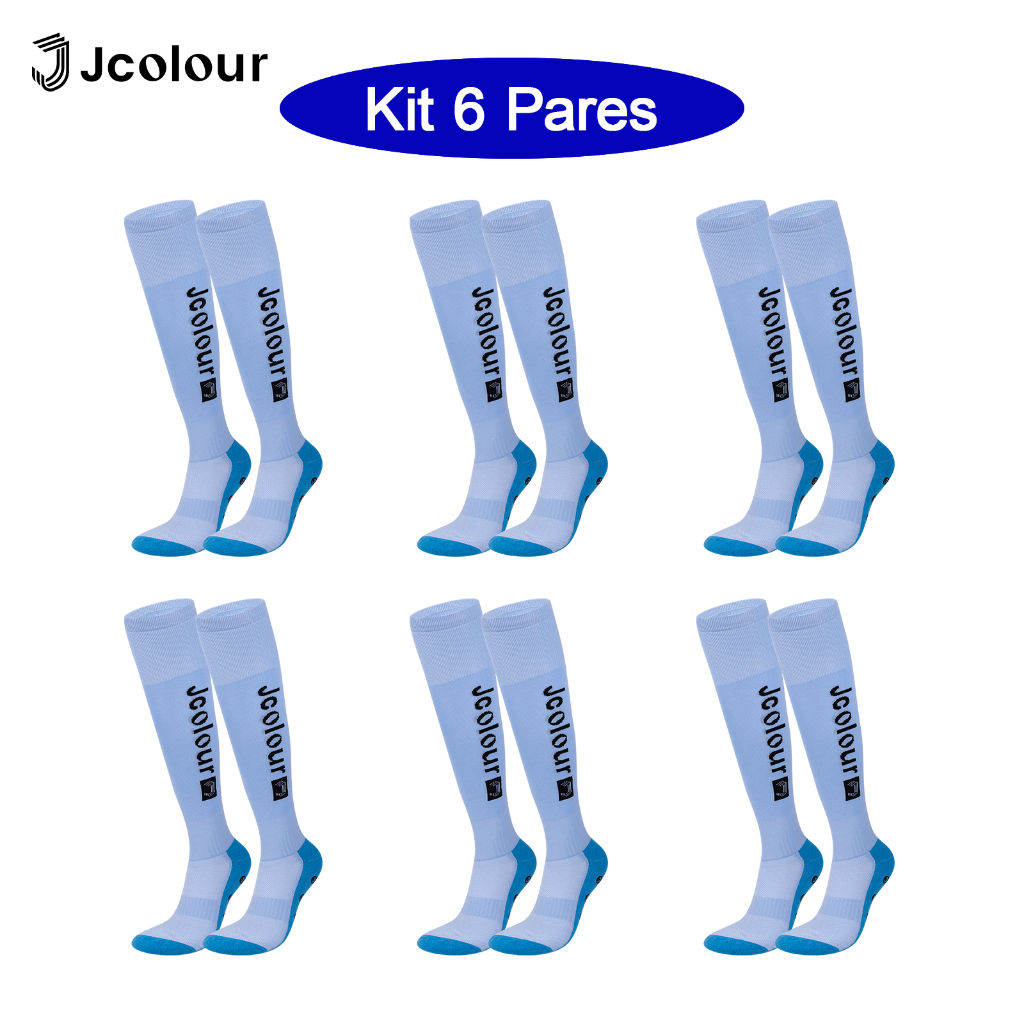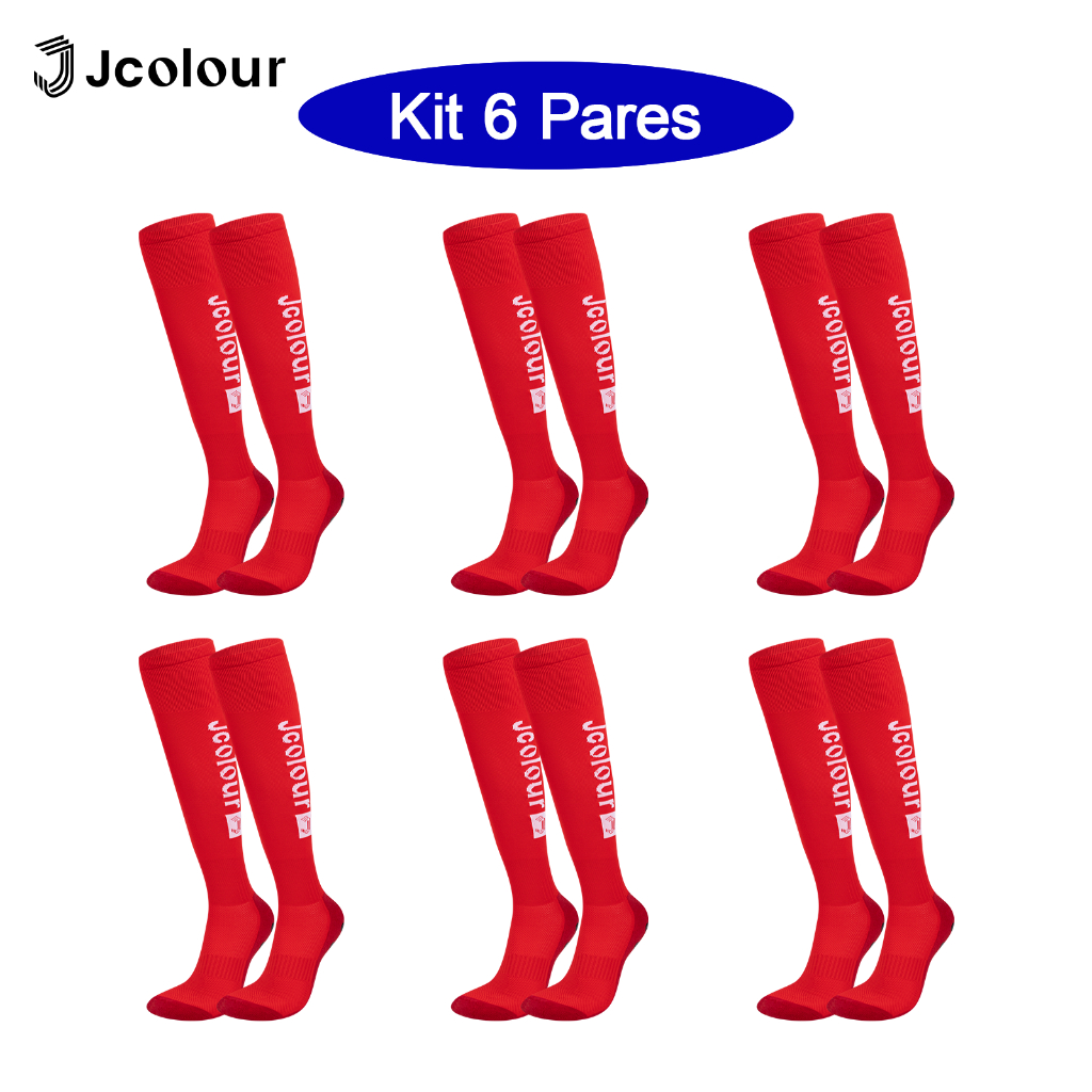 Jcolour Novo Kit 6 Meião de Futebol Antiderrapante Esportiva Respirável Longas Alta Qualidade