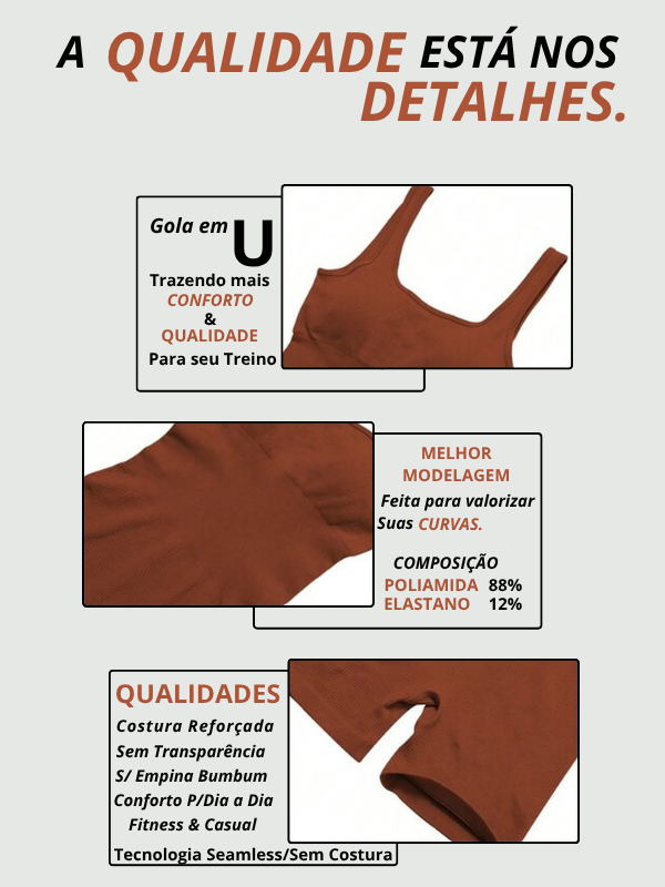 Macacão Canelada de Cintura Alta Macaquinho Poliamida Sem Costura Academia Feminina Fitness Trendy