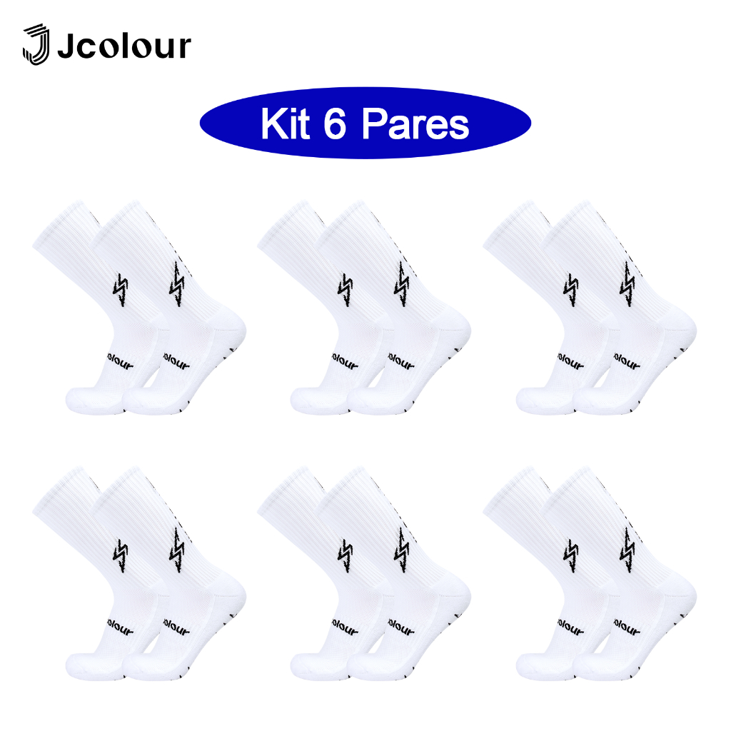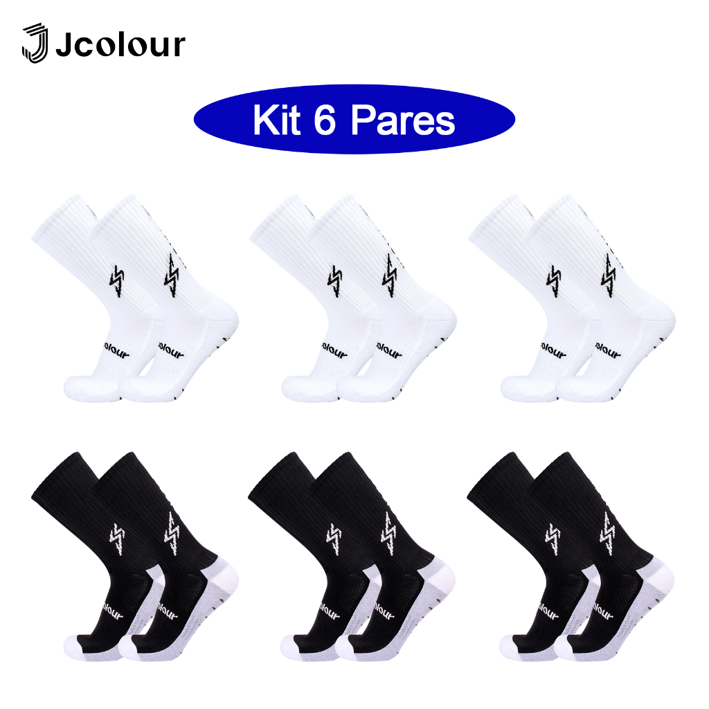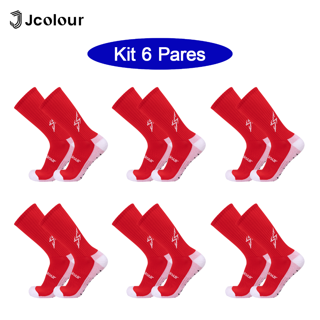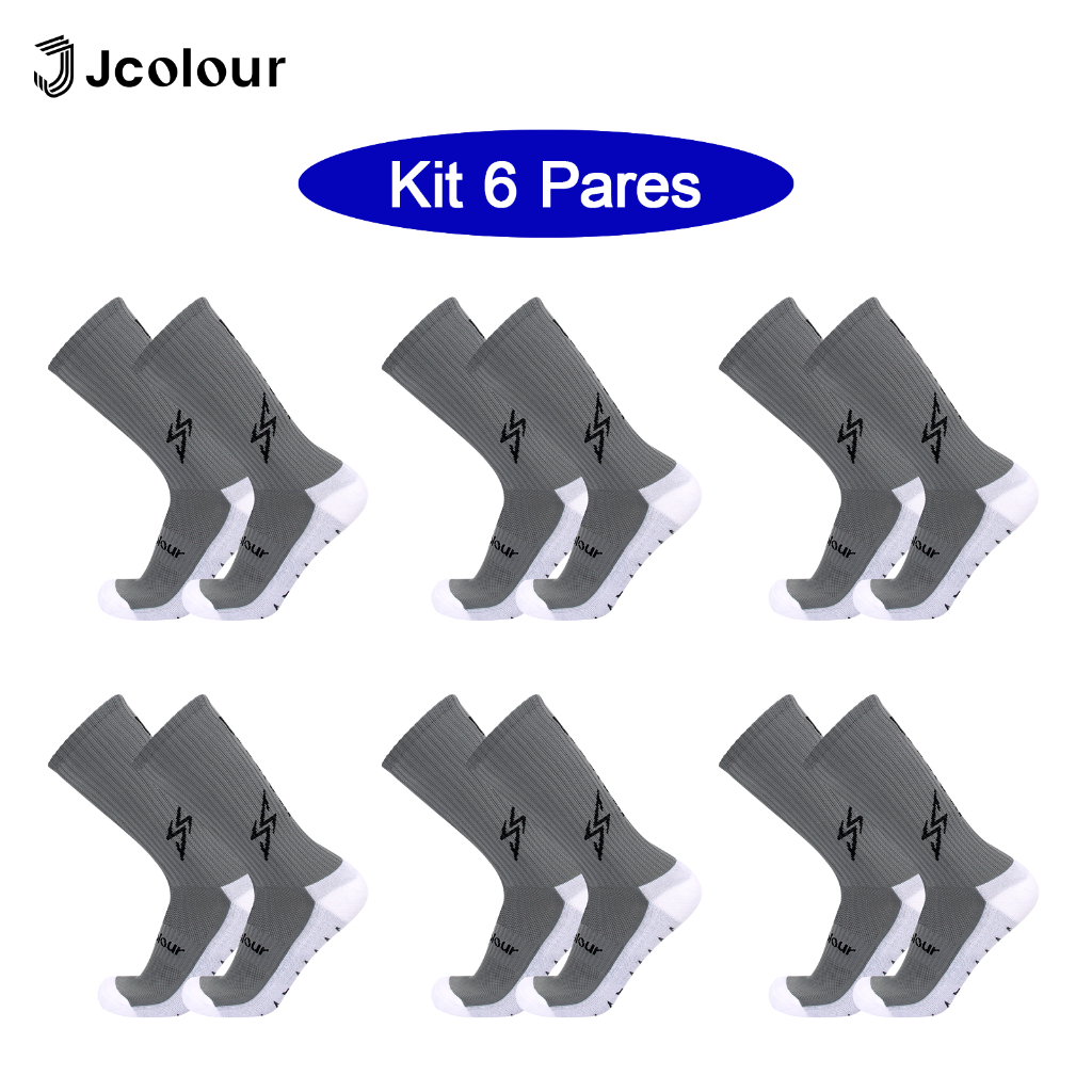 Jcolour Kit 6 Meias de Futebol tubo médio Thundergrip Esportivas Corrida Antiderrapante Futebol