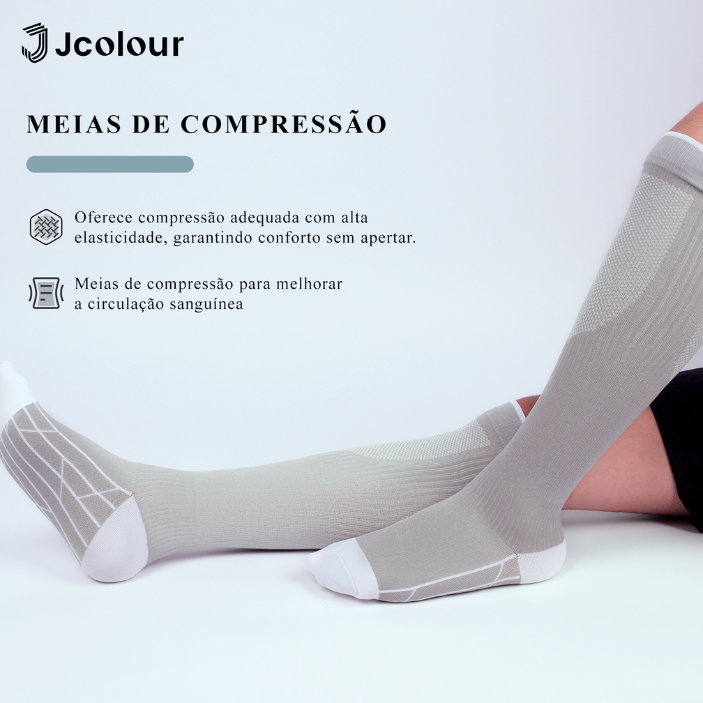 Kit 3 Pares Meias de Compressão para Corrida Viagem e Gravidez Melhoram Circulação Reduzem Inchaço