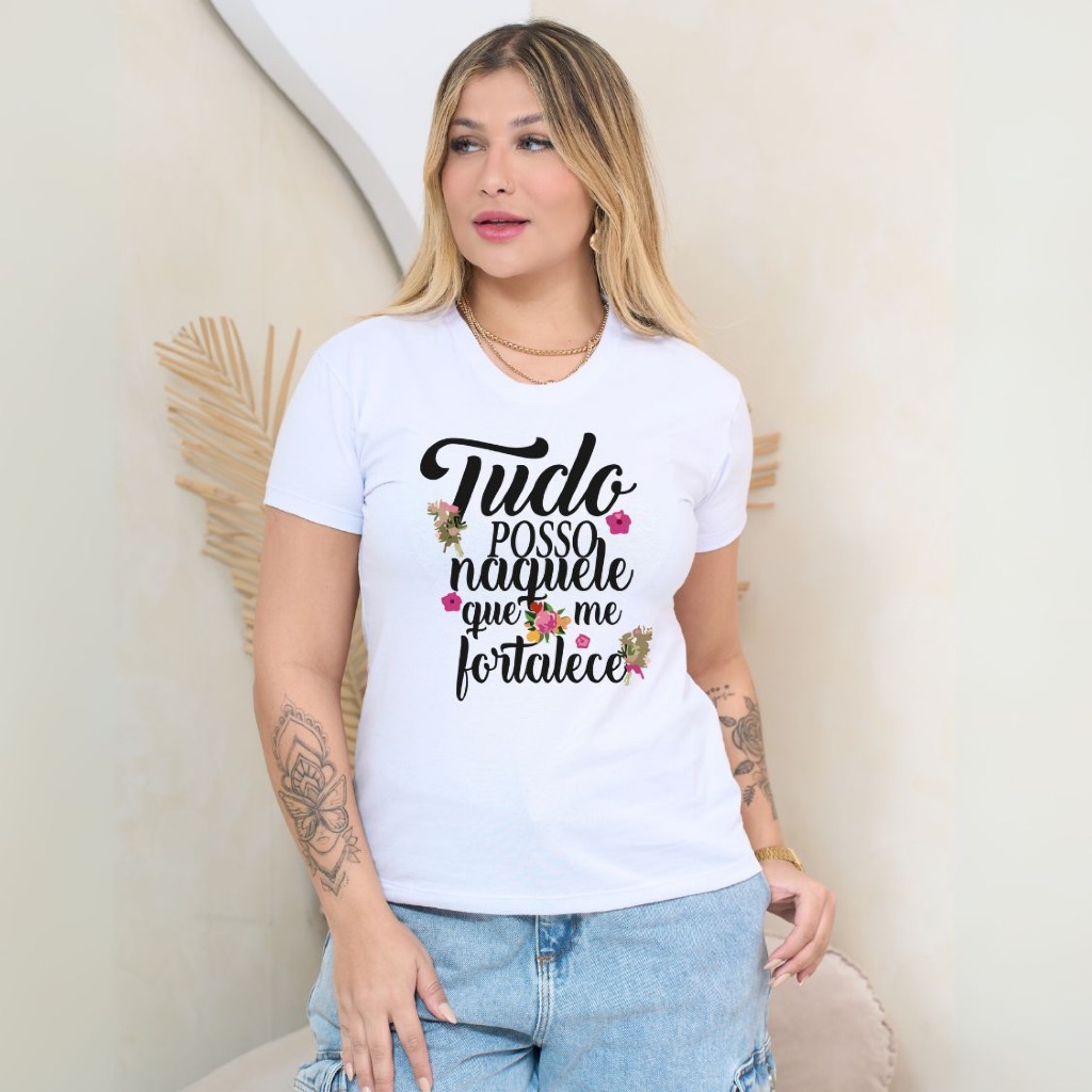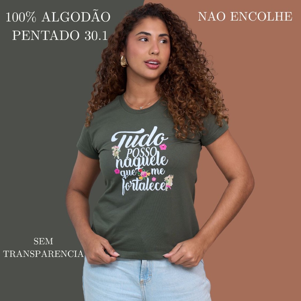 Camiseta Feminina Básica 100% Algodão Confortável Casual T-shirt Blusa Lisa Look Diário Evangélica