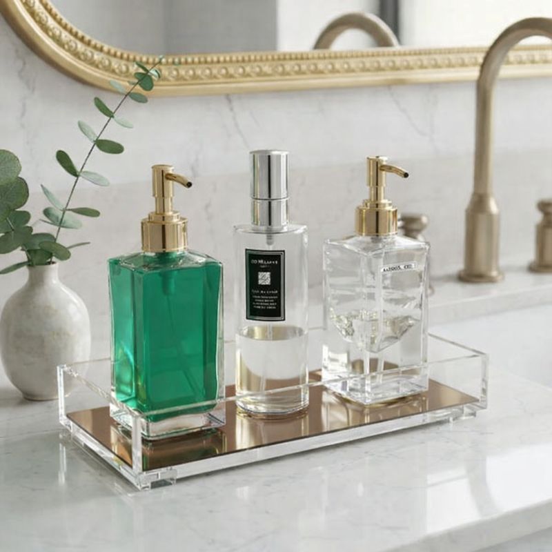 Bandeja em Acrílico com fundo Espelhado para Lavabo