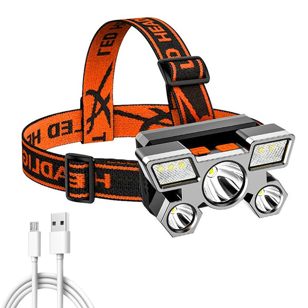 Lanterna de Cabeça 5 Led Luz Forte À Prova D 'Água USB Recarregável 4 Modos