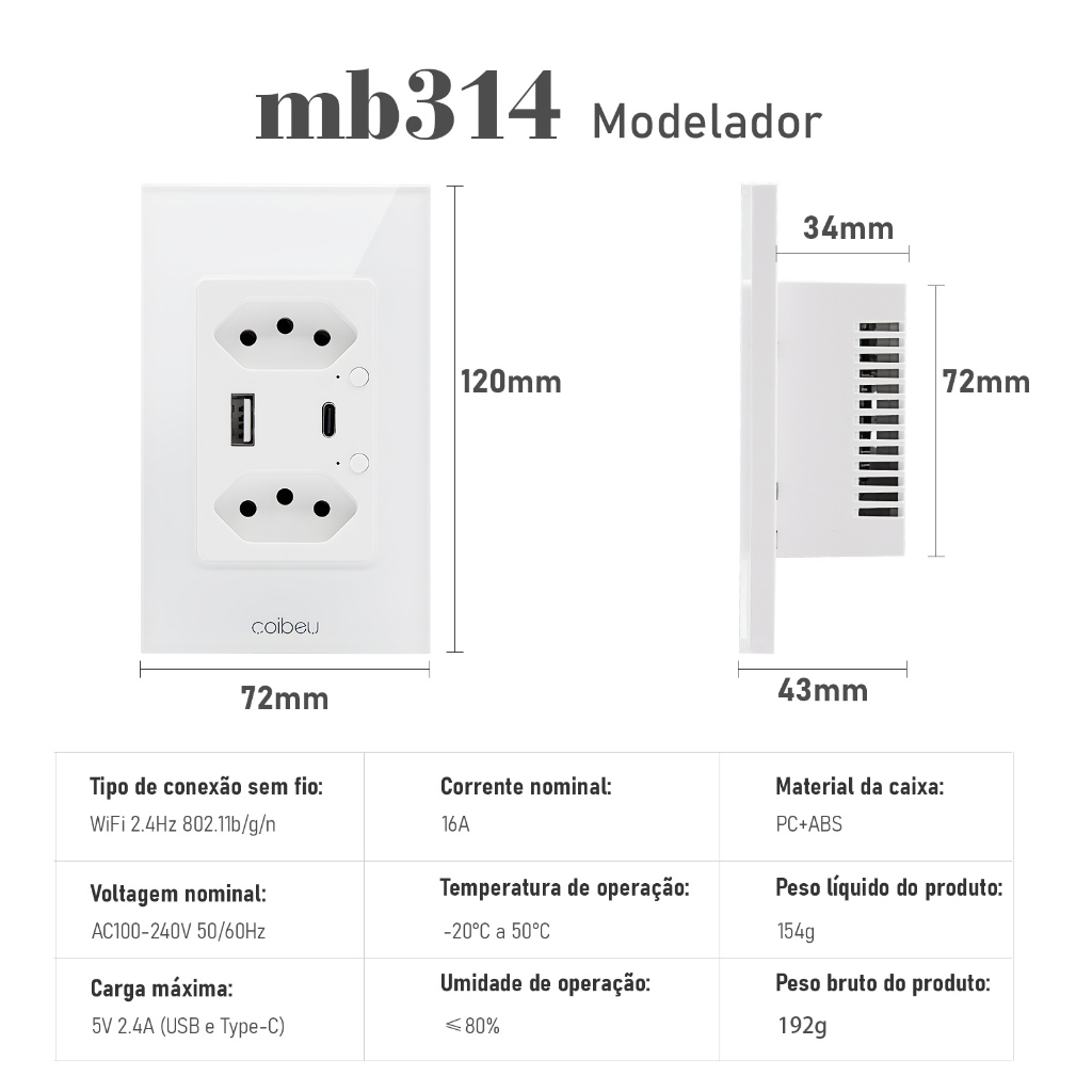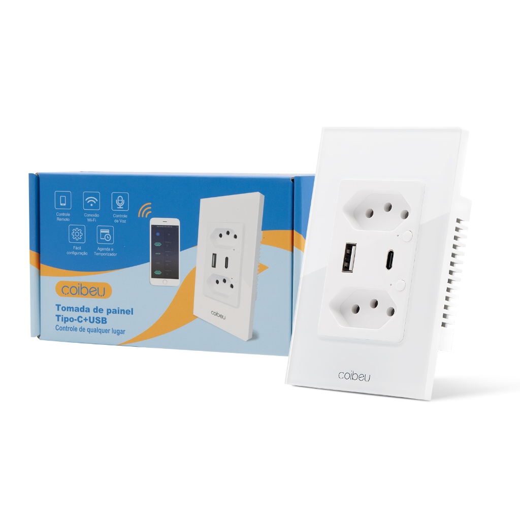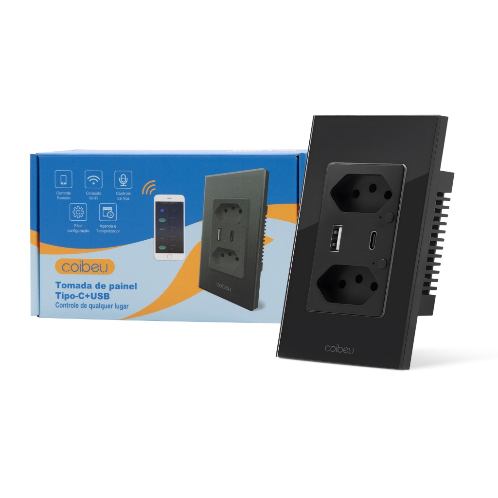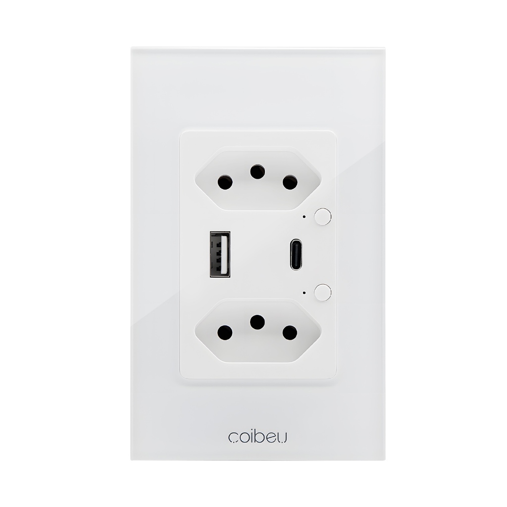 COIBEU Tuya WiFi Tomada De Parede Inteligente 16A Porta USB Tipo C Saídas De Controle individual Plug Para Google Alexa