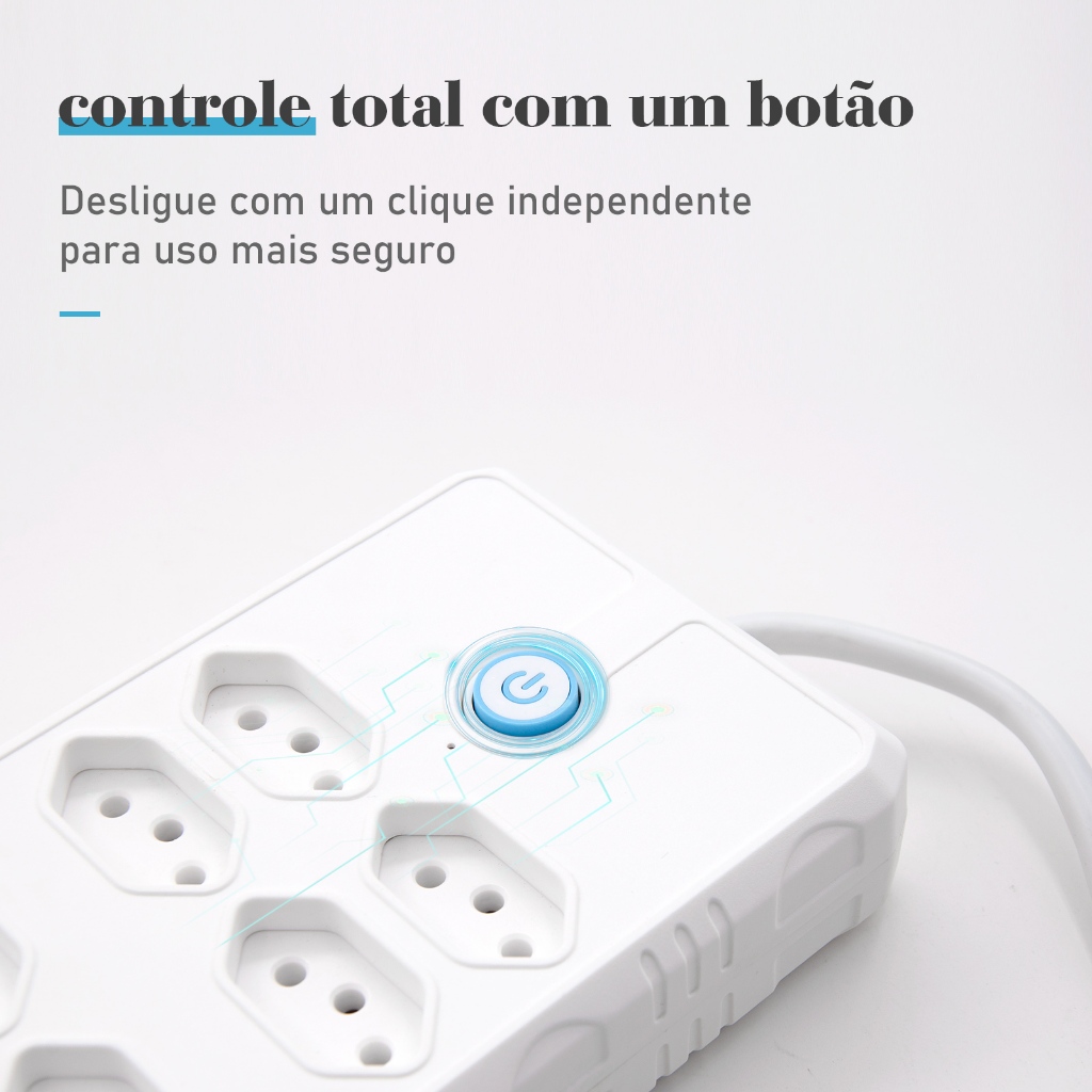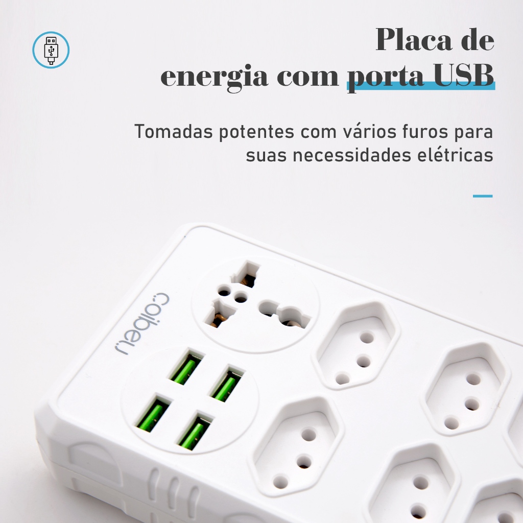 COIBEU Extensão Elétrica 2m/5m 10A Com 6 tomadas de energia 1 tomadas universal 4 USB Bivolt Power 110v/220v