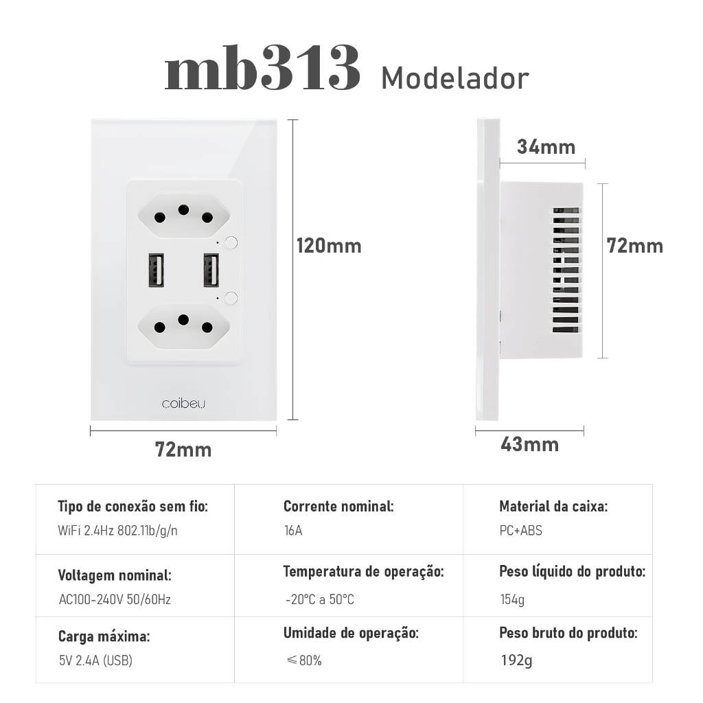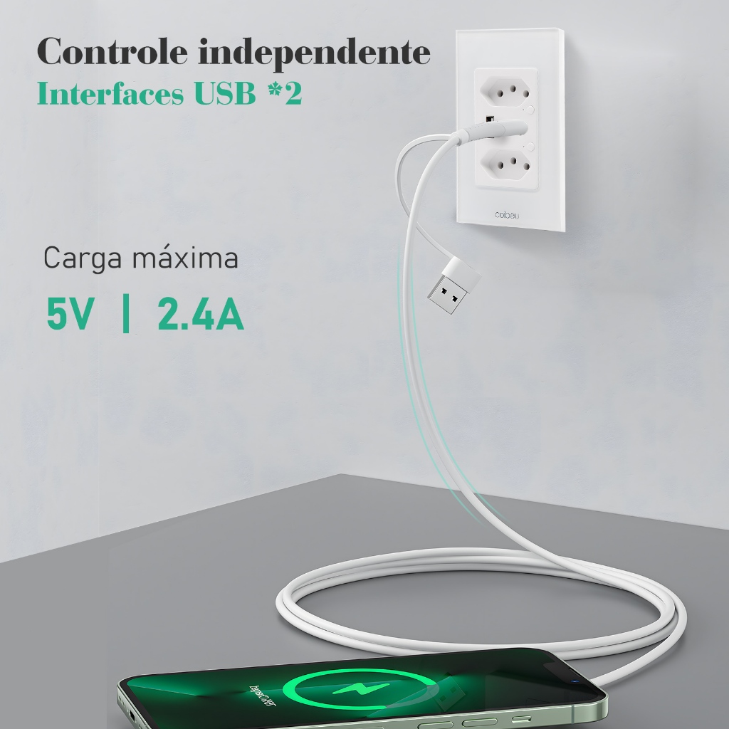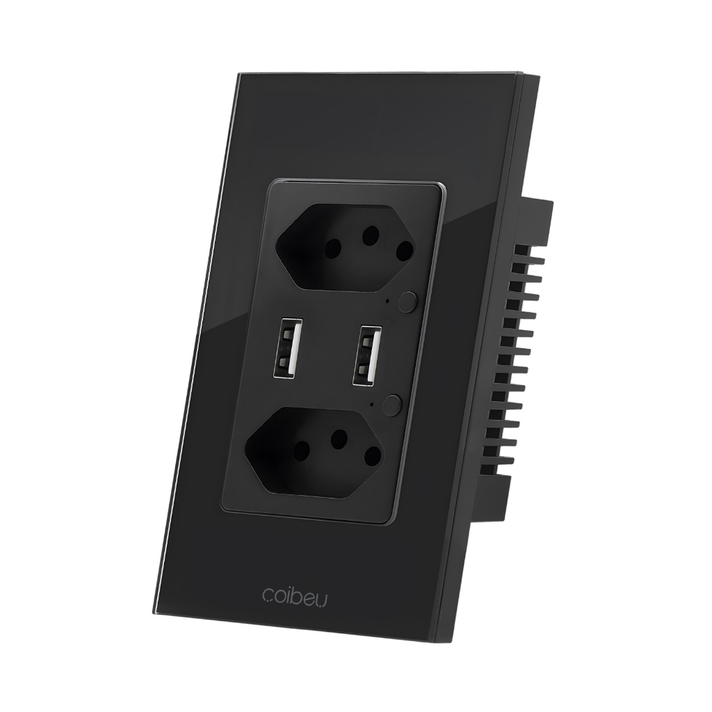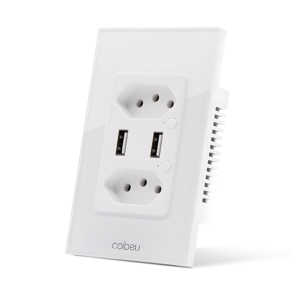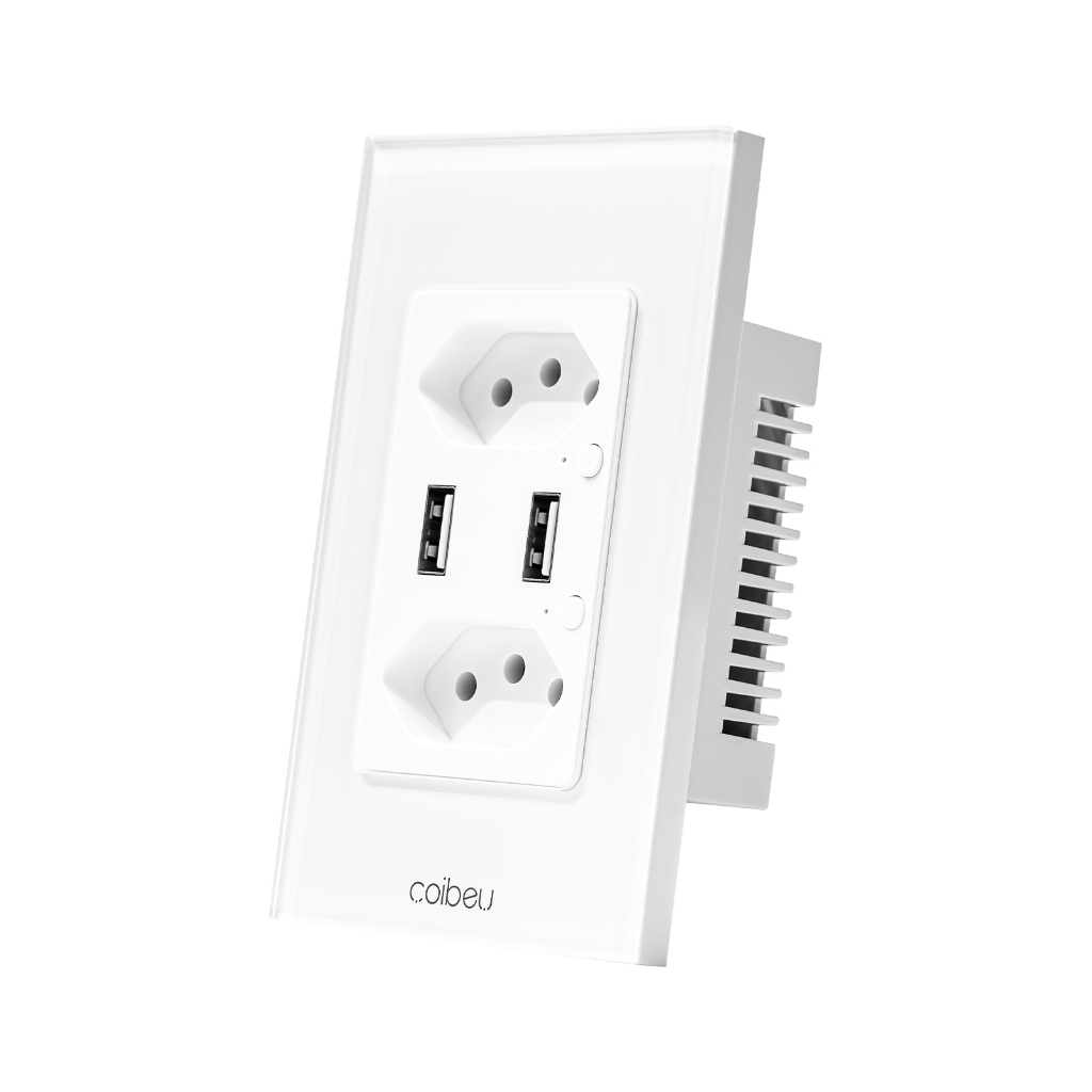 COIBEU WiFi 2 USB Com Painel De Vidro De Toque De Soquete Botão De Saída Funciona Tuya Alexa Google 2 Tomada e 2USB