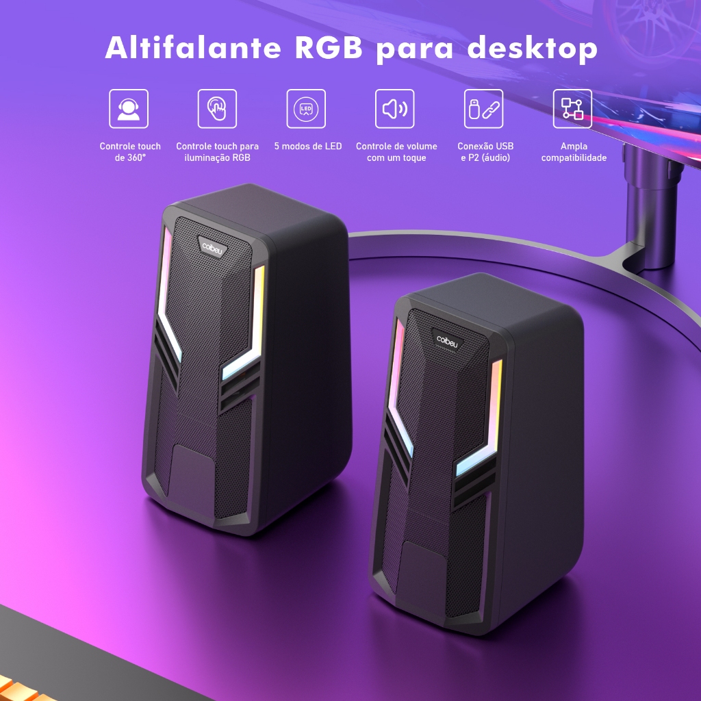 COIBEU Caixa de Som Pc Gamer Subwoofer P2 Led Rgb Pc Notebook Celular Tablet