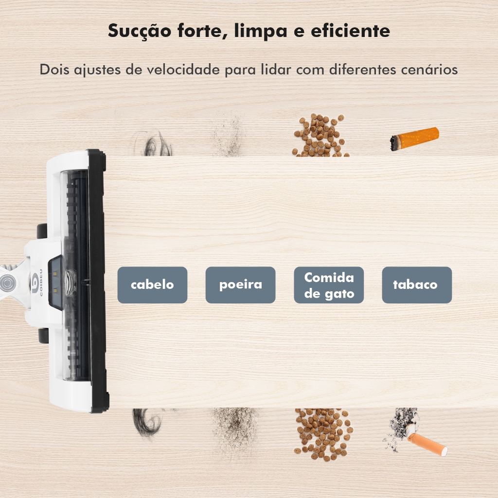 COIBEU Aspirador de Pó Sem Fio 120W Escova Elétrica LED Bateria 2000mAh 2 Velocidades