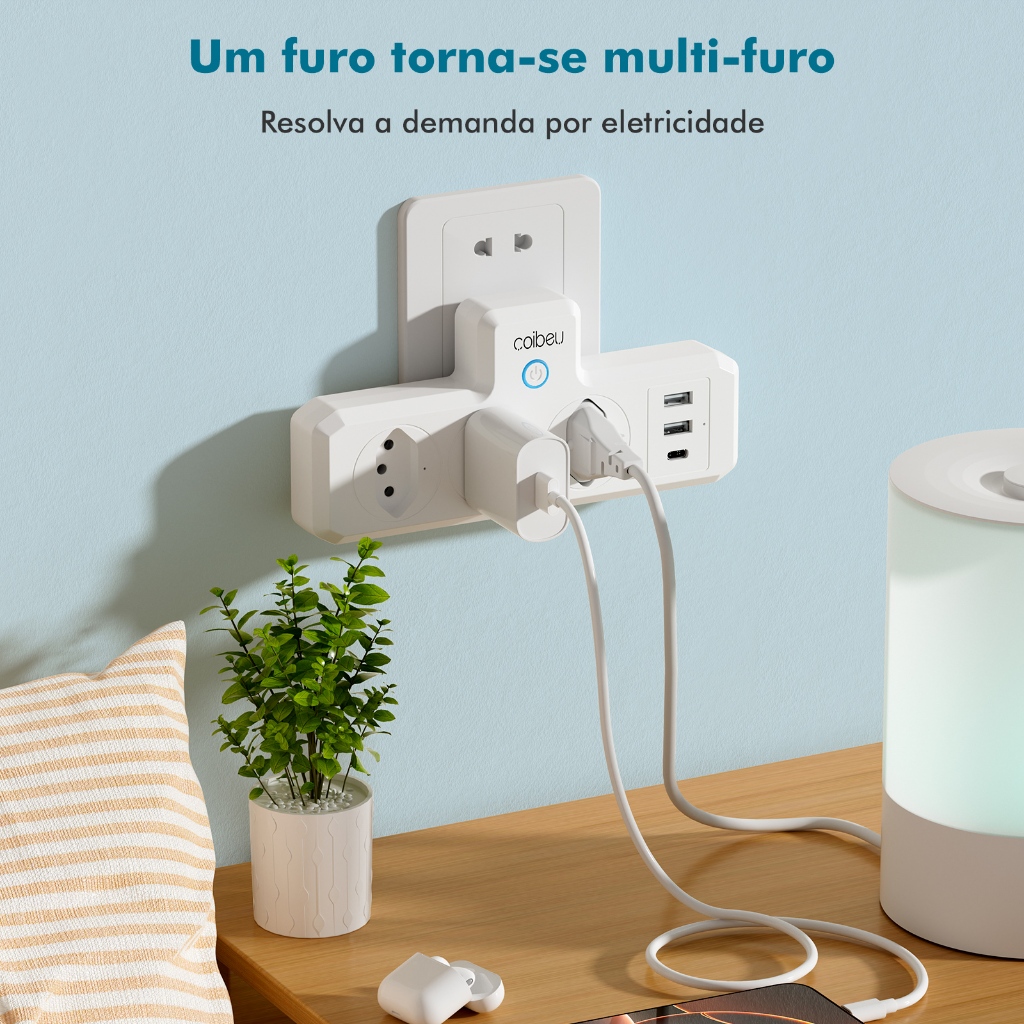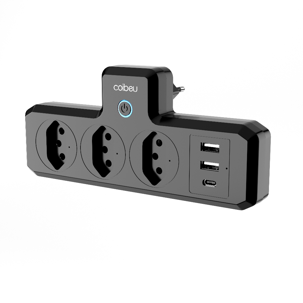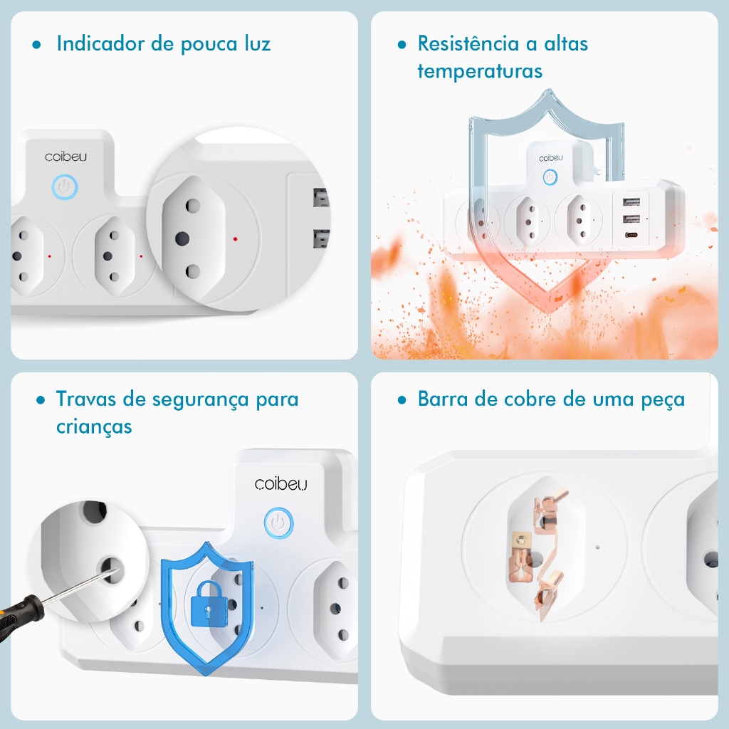 COIBEU Extensão Inteligente Tuya com USB Type-C Plug Universal Carregador Rápido e Controle por App
