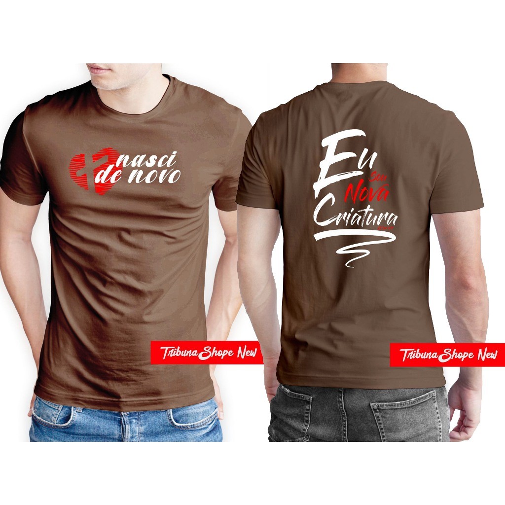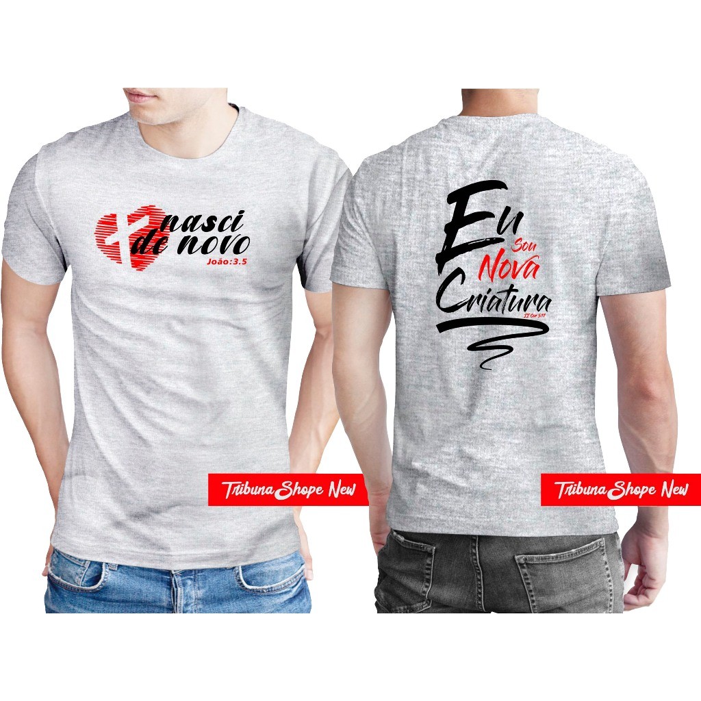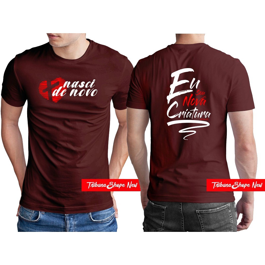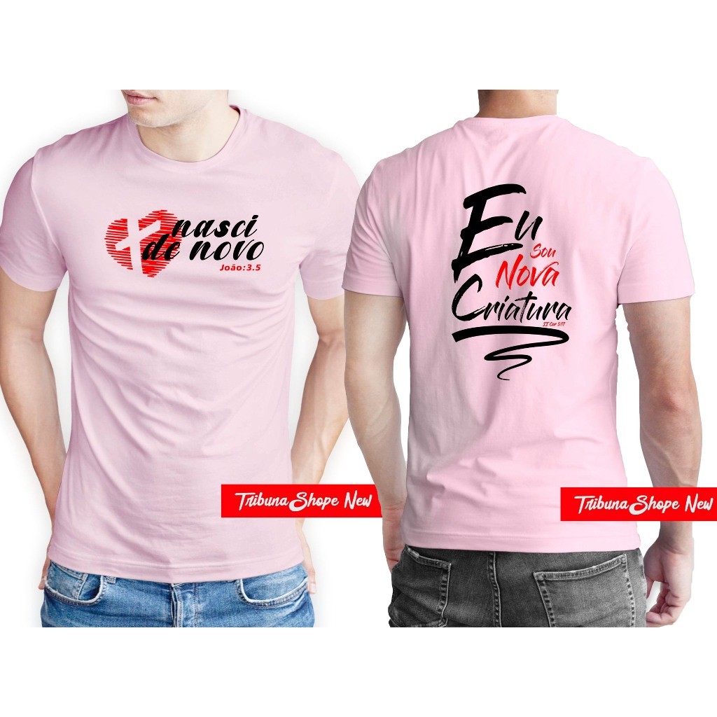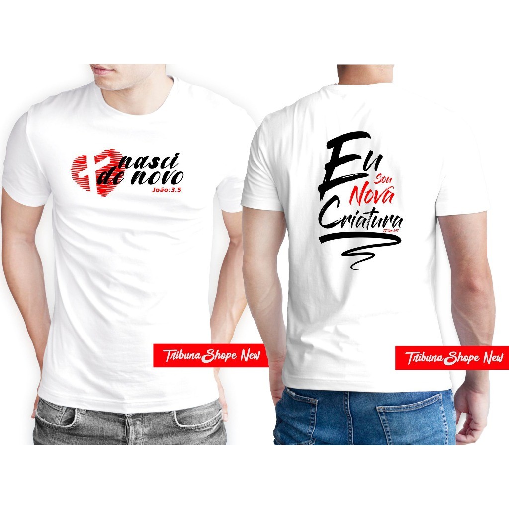 Camiseta Unissex Frente Nasci de Novo Costa Eu Sou Nova Criatura 100% Algodão