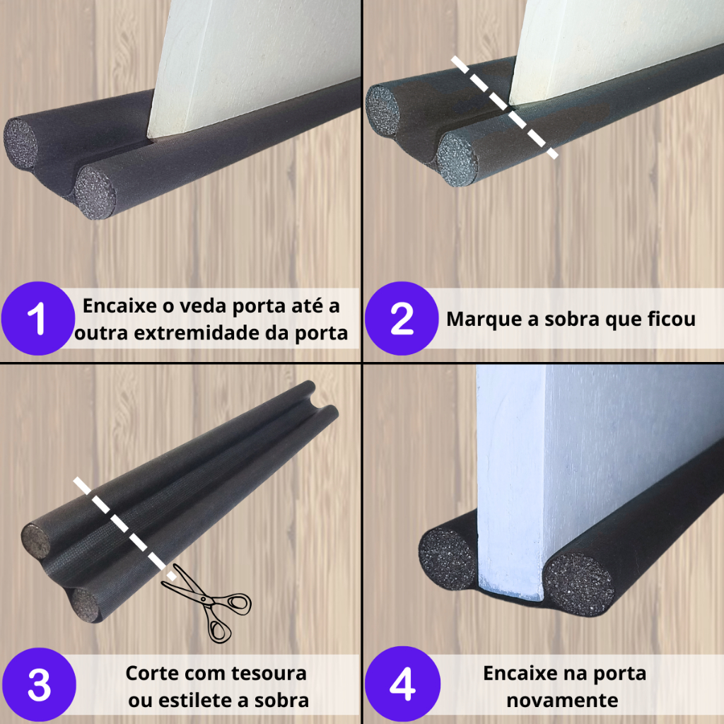 Kit 1 ou 2 Unidades de Veda Porta Ajustável Protetor Rolinho Impermeável 80cm 90cm 100cm