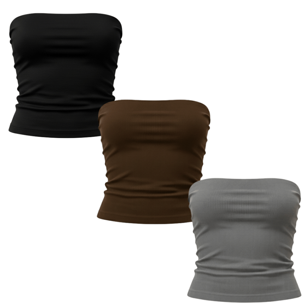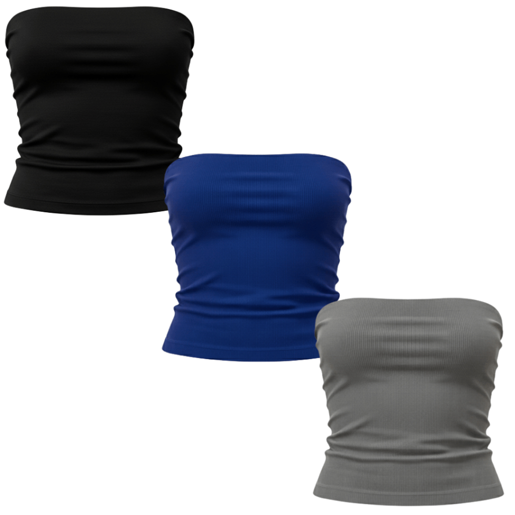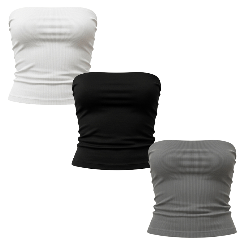 Kit 3 Tops Tube Feminino Canelado Versátil Moderno Tendência Casual Ajuste Perfeito Conforto Estilo