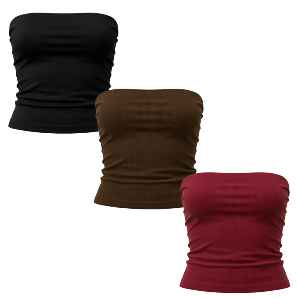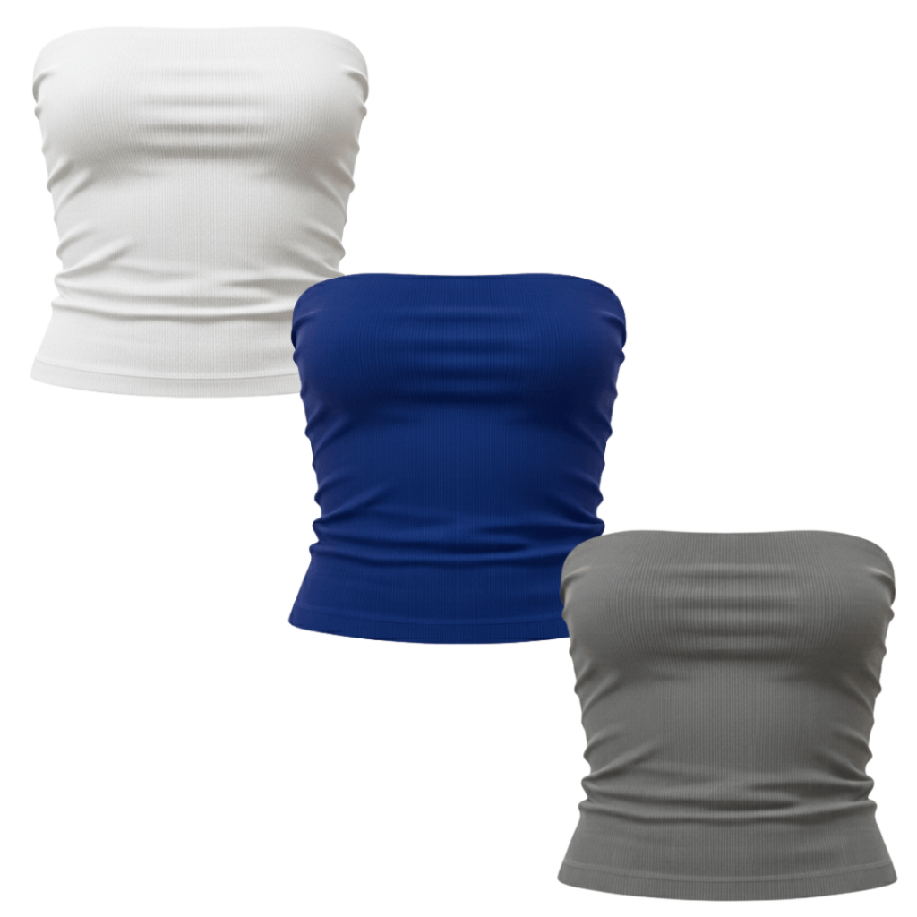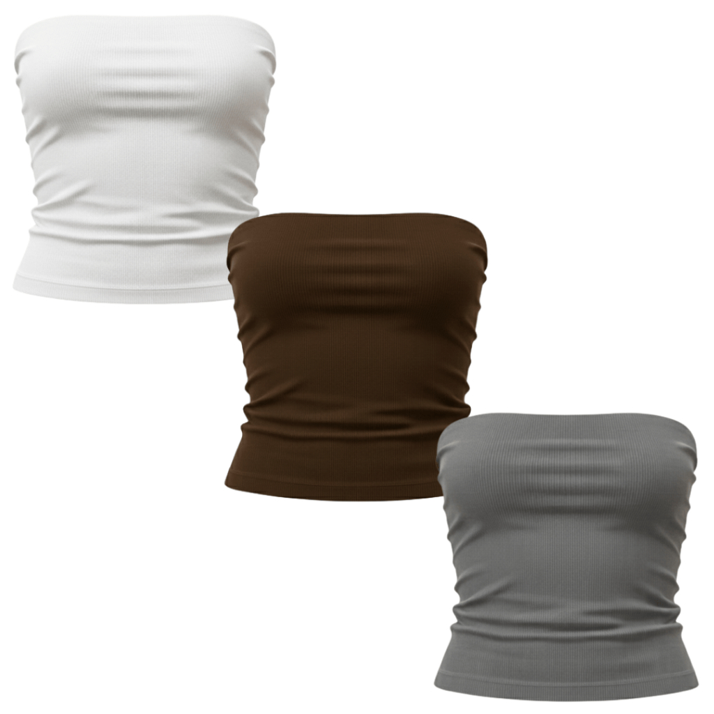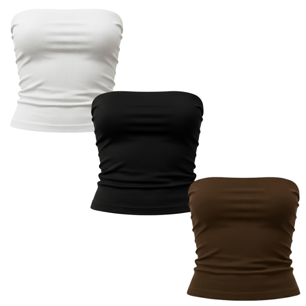 Kit 3 Tops Tube Feminino Canelado Versátil Moderno Tendência Casual Ajuste Perfeito Conforto Estilo