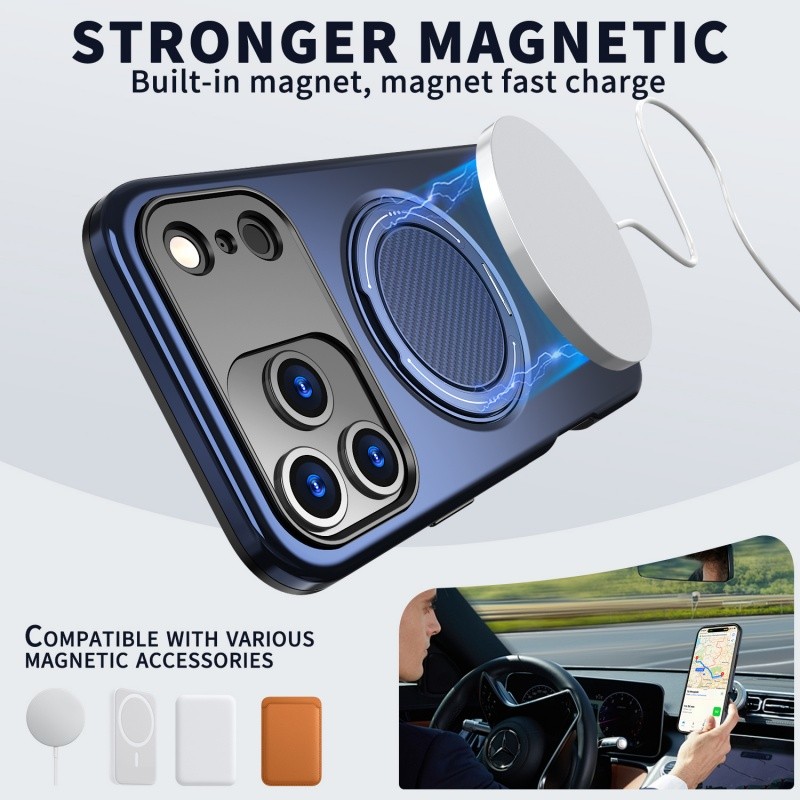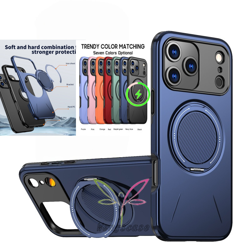 Anel Giratório Magnético Fosco Capa Para IPhone 17 16E 16 15 14 13 12 Pro Max Plus Suporte À Prova De Choque