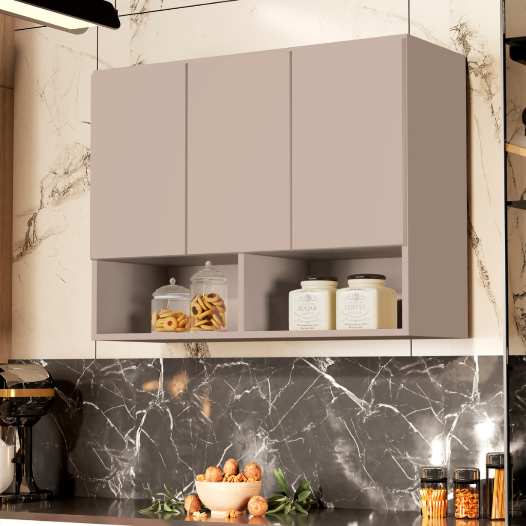 Armario De Parede Cozinha 3 Portas Com Nicho Organizador Modelo Bela