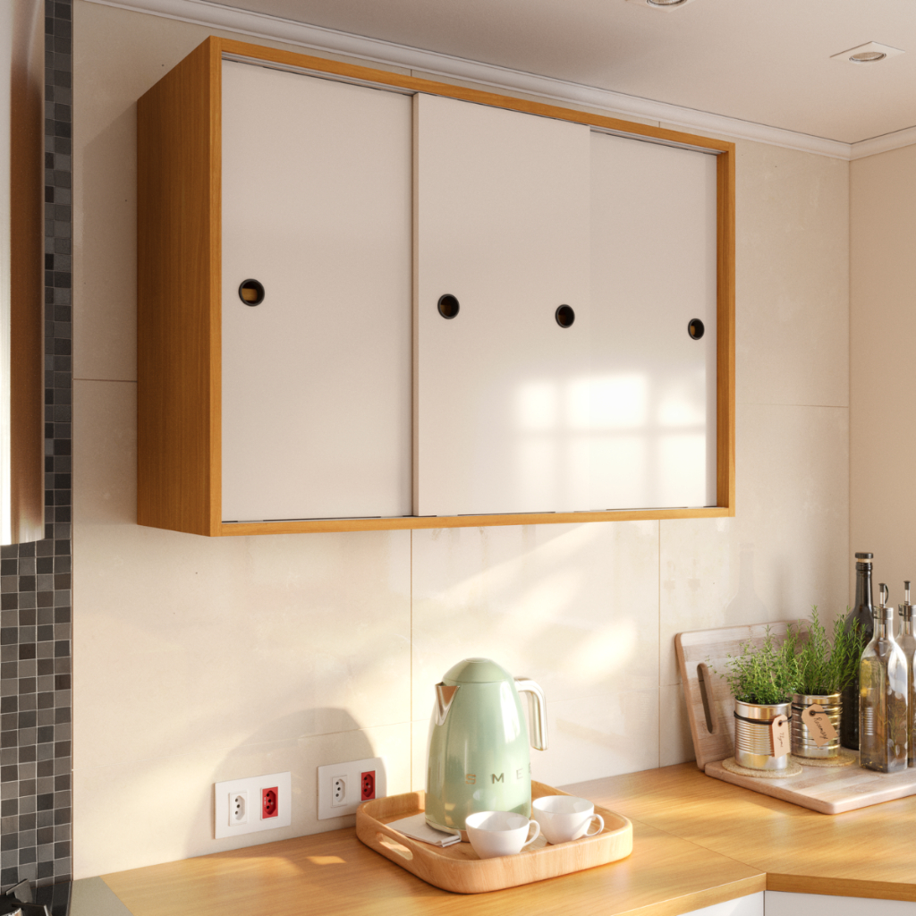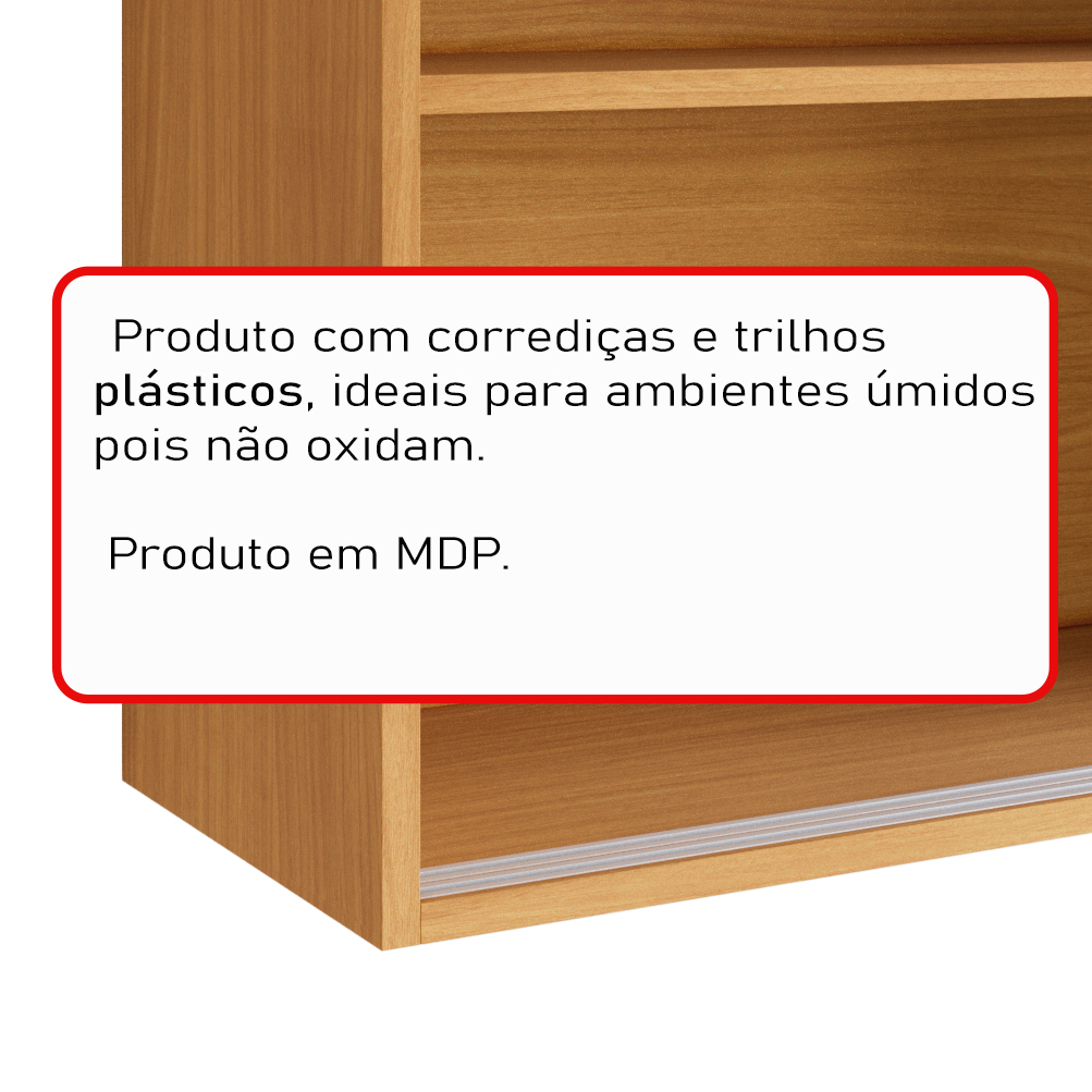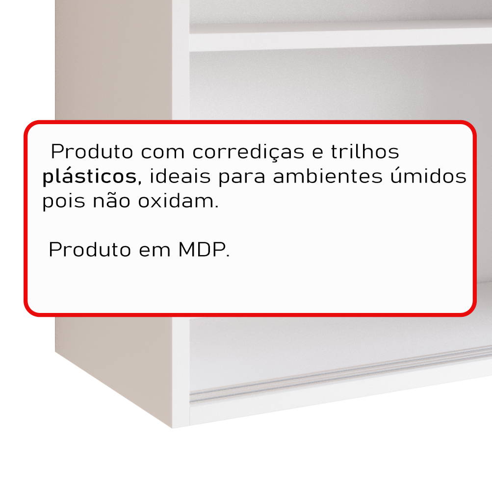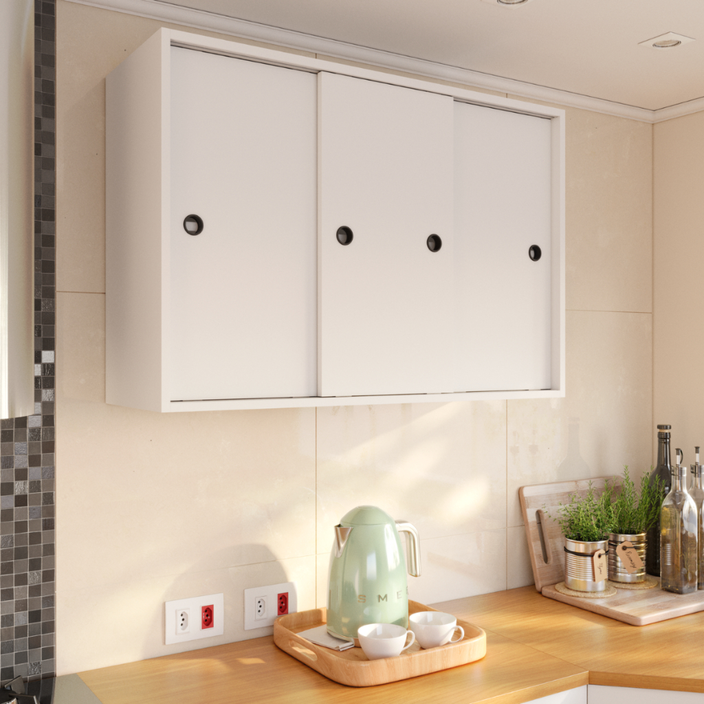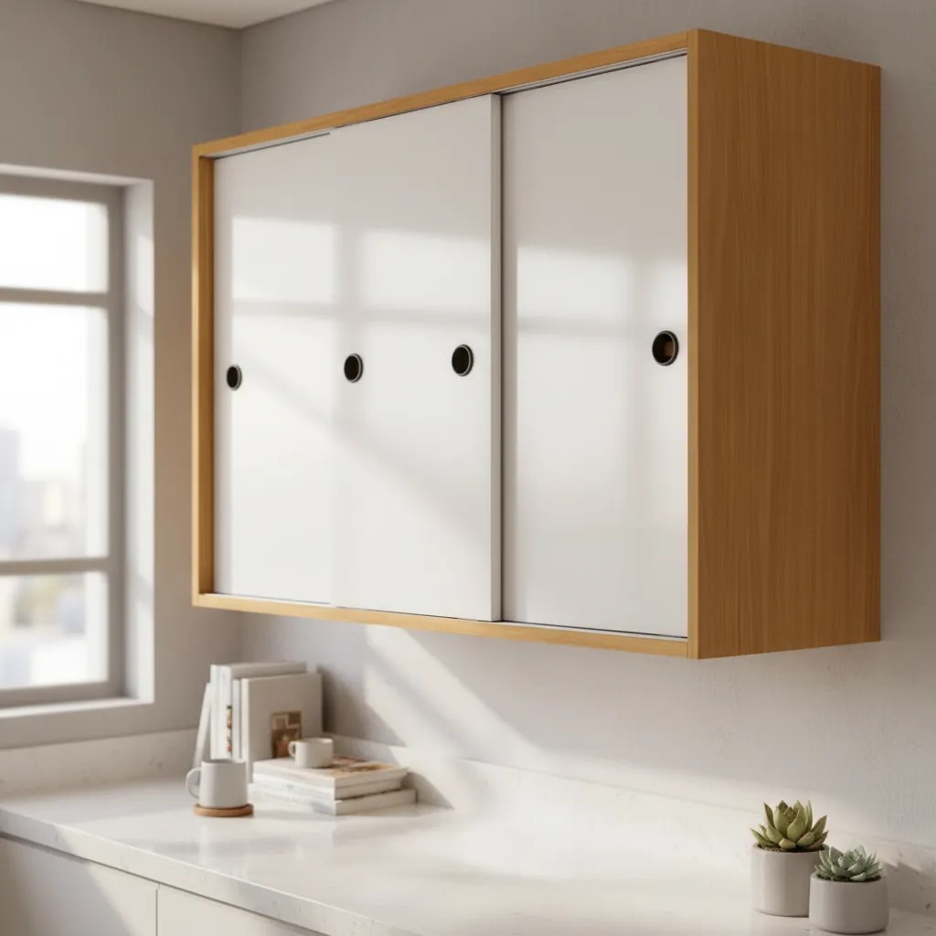 Armario Suspenso Cozinha 3 Portas De Correr E Prateleira Interna