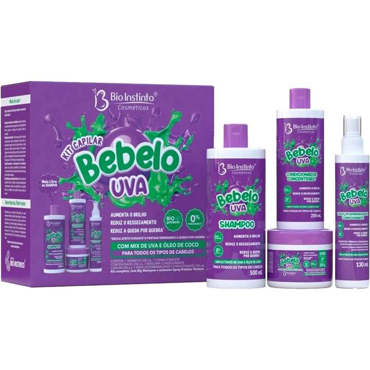 Kit Capilar Bebelo Uva - Shampoo, Condicionador, Máscara e Colônia Bio Instinto