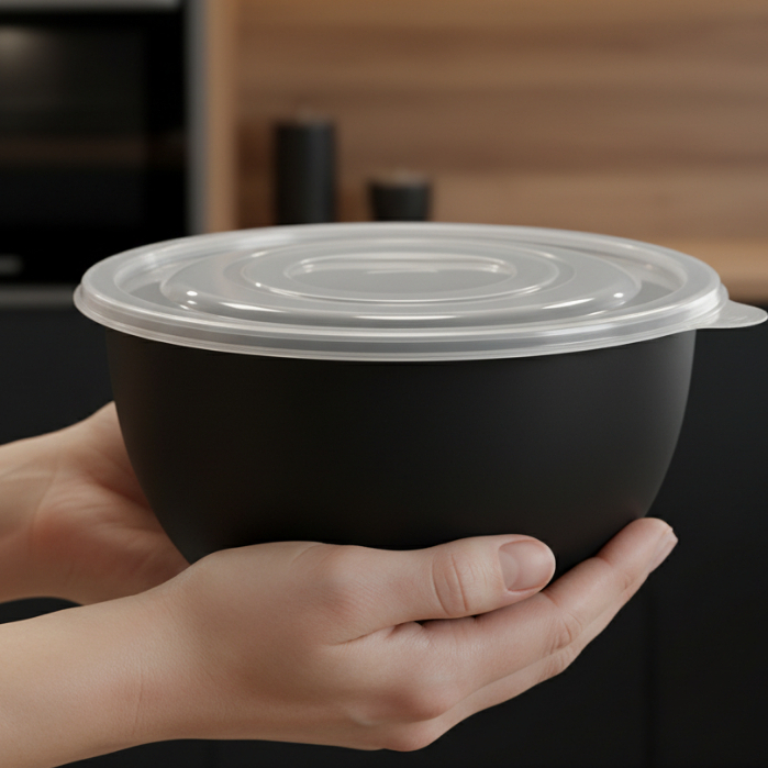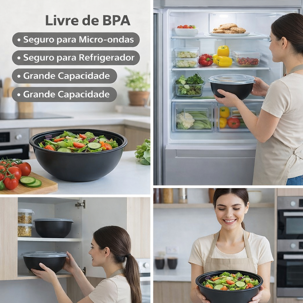 Kit 2 Bowl Redondo Potes Gigante 8L + 5L com Tampa Transparente Hermética, Saladeira tijela cozinha