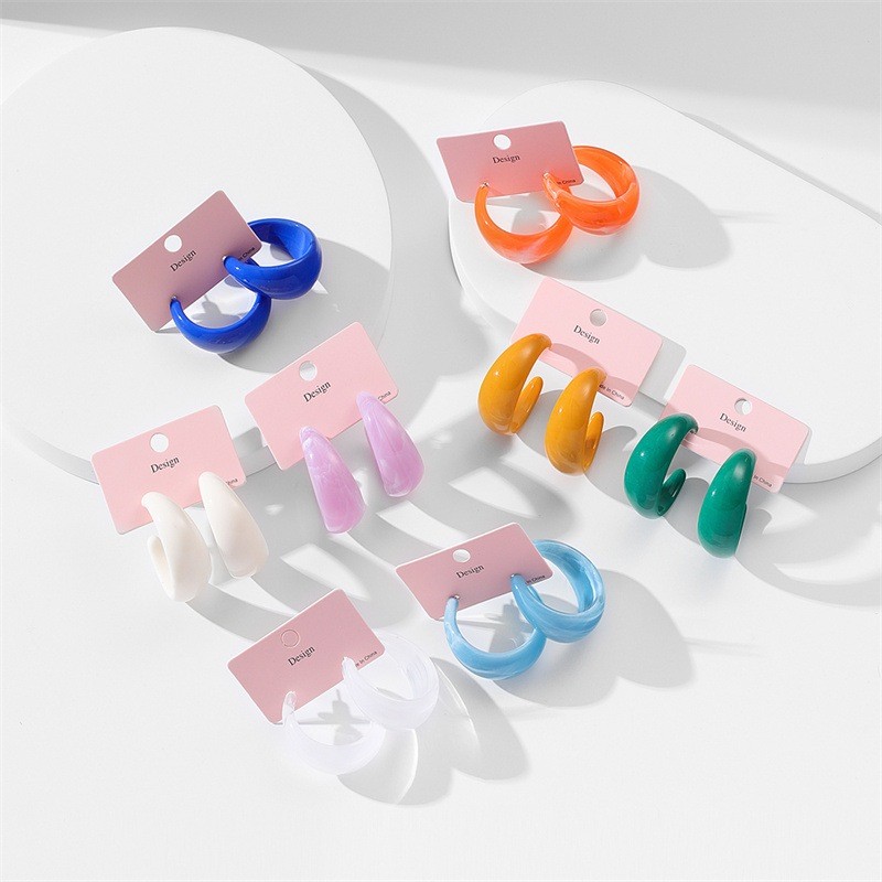 Yutsai Brincos De Argola Acrílicos Exagerados Em Forma De C Para Mulheres , Joias , Presentes PD1854