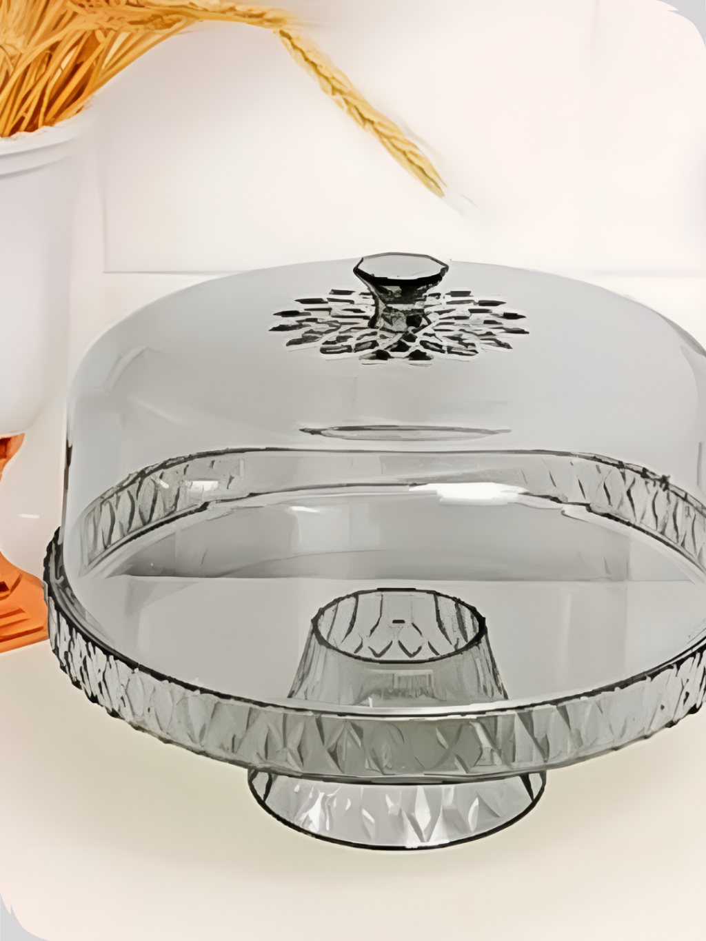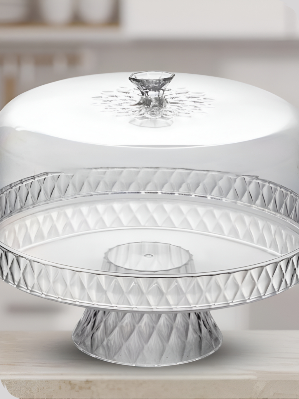 Boleira alta Acrilico Transparente Bolo Com detalhe Puxador na Tampa e pezinho