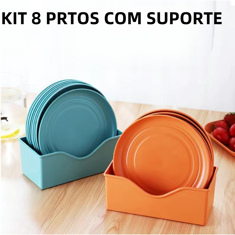 Kit Conjunto 10 Pratos Com Base Plásticos Duros Reutilizaveis