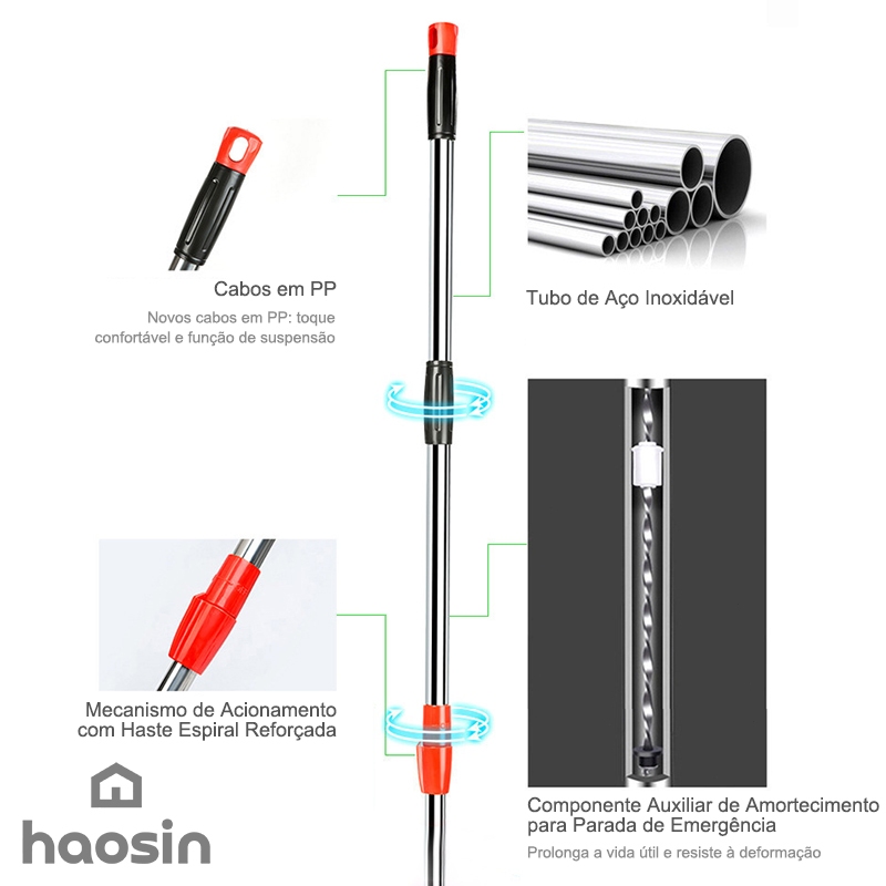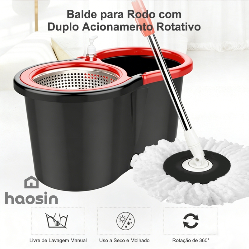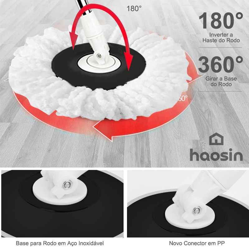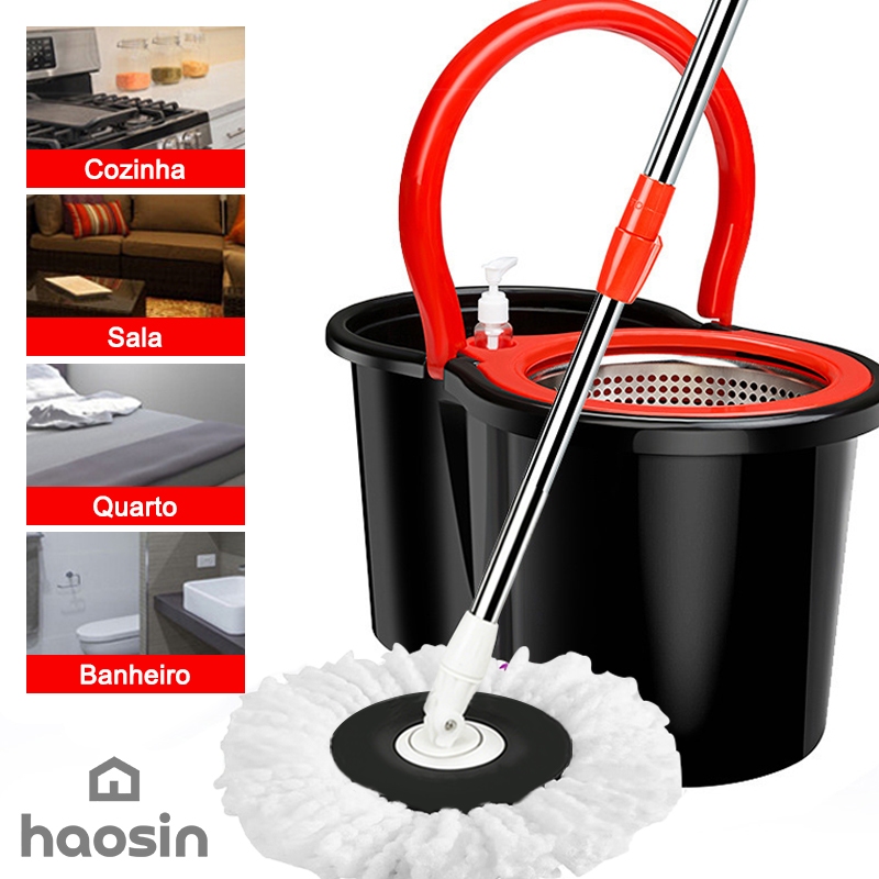 HAOSIN 360°Mop Aço inoxidável Giratório Esfregão Profissional 2 Refis Cesto Giratório 140cm de cabo