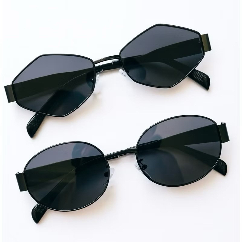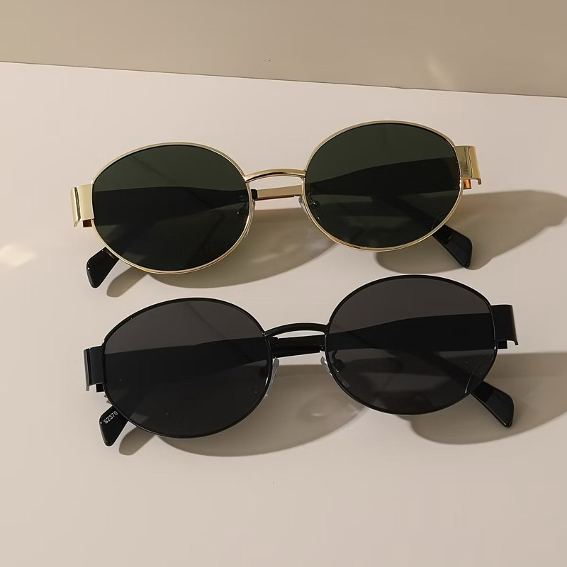 Kit 2 Peças De Óculos De Sol Ovais Vintage Com Proteção UV400 , Armação De Metal Para Mulheres E Homens