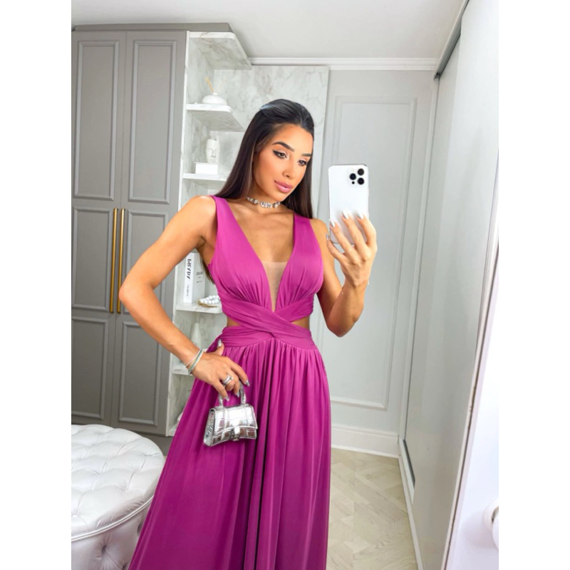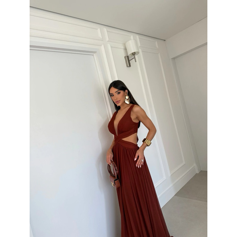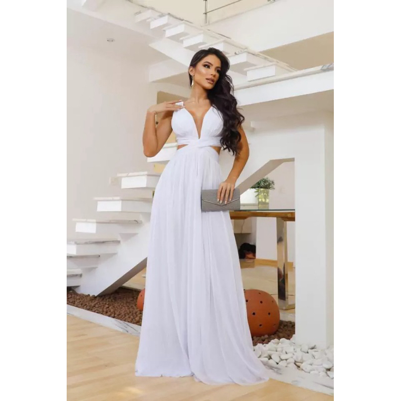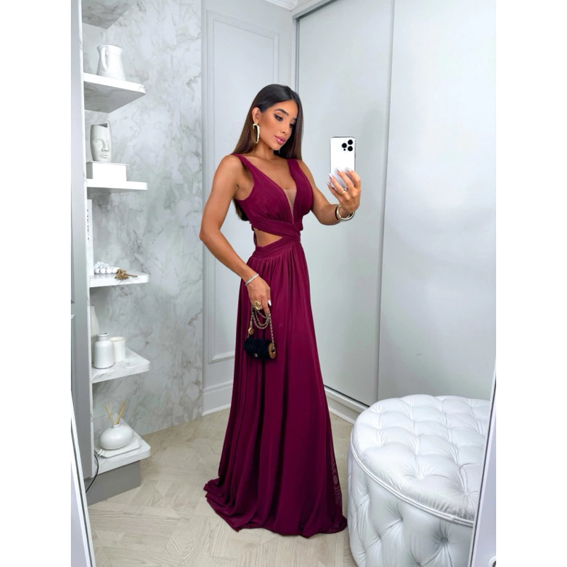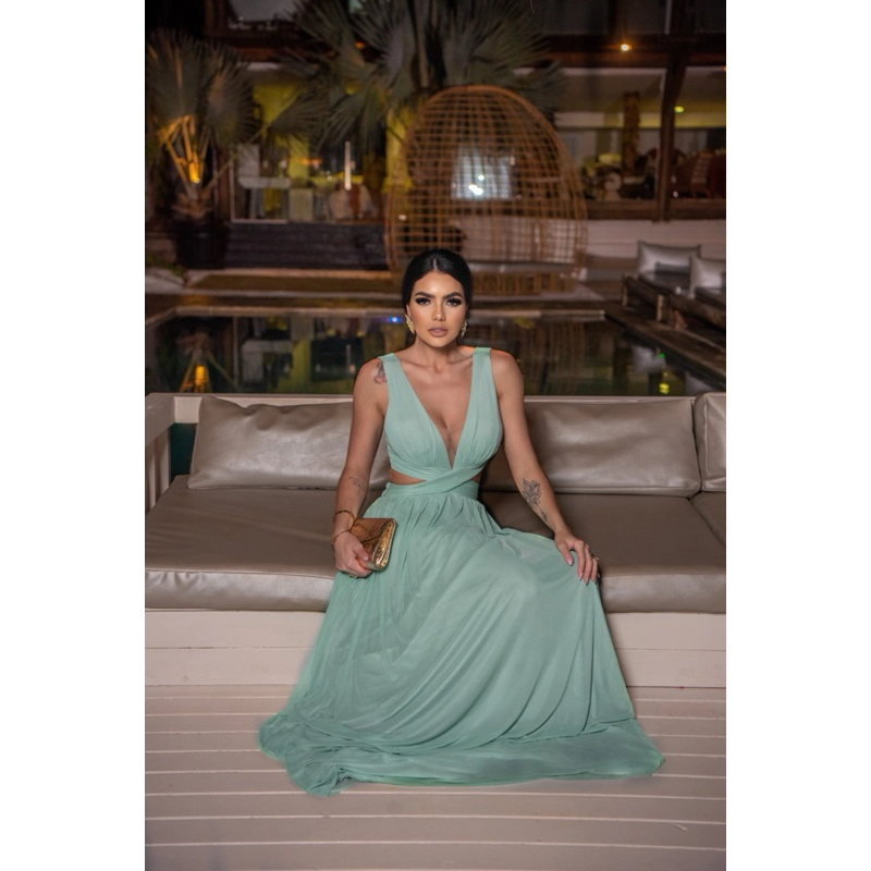 Vestido de Festa Longo Micro Tule com abertura na lateral