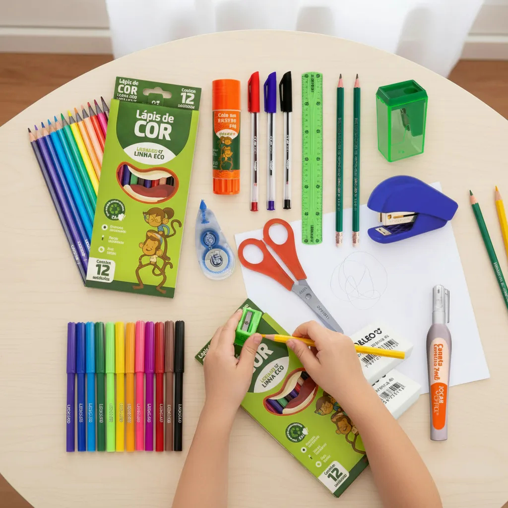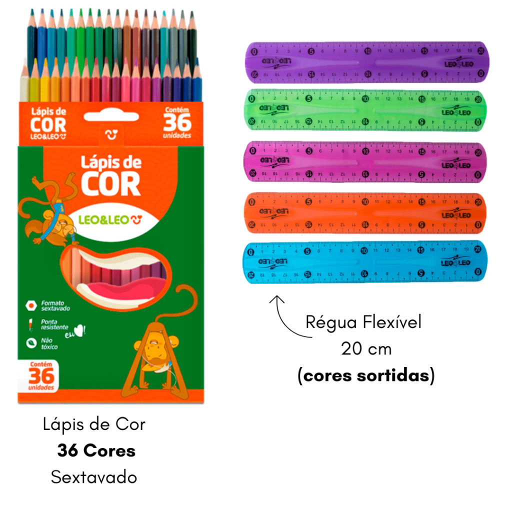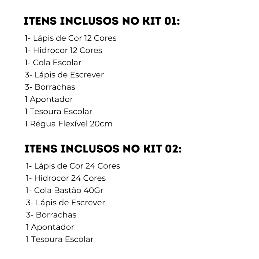 Kit Escolar Lápis de Cor 12 ou 24 Cores Hidrocor Apontador Borracha Cola Material Escolar Completo