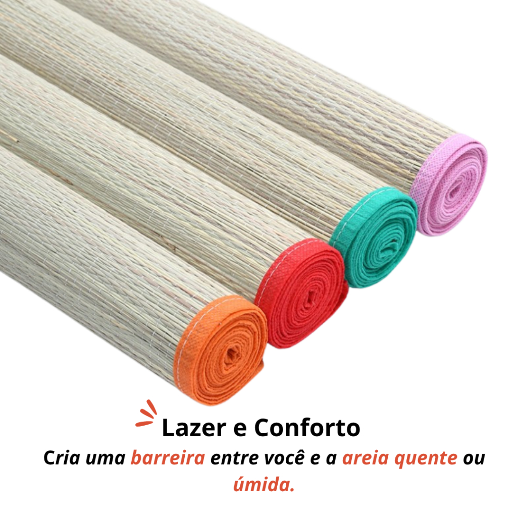 Esteira de Praia Piquenique Camping Canga Palha Natural Verão Pé na Areia Tapete Dobrável 180x60cm