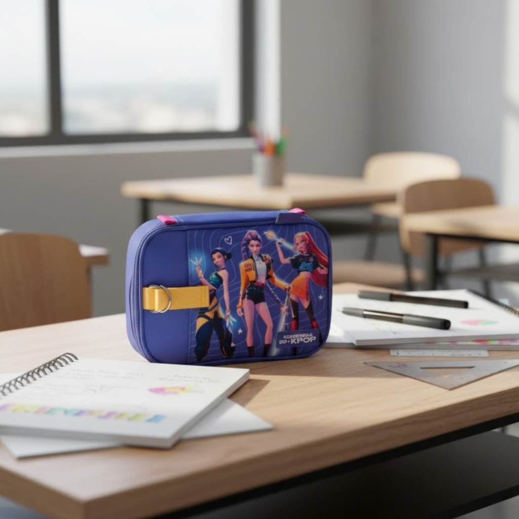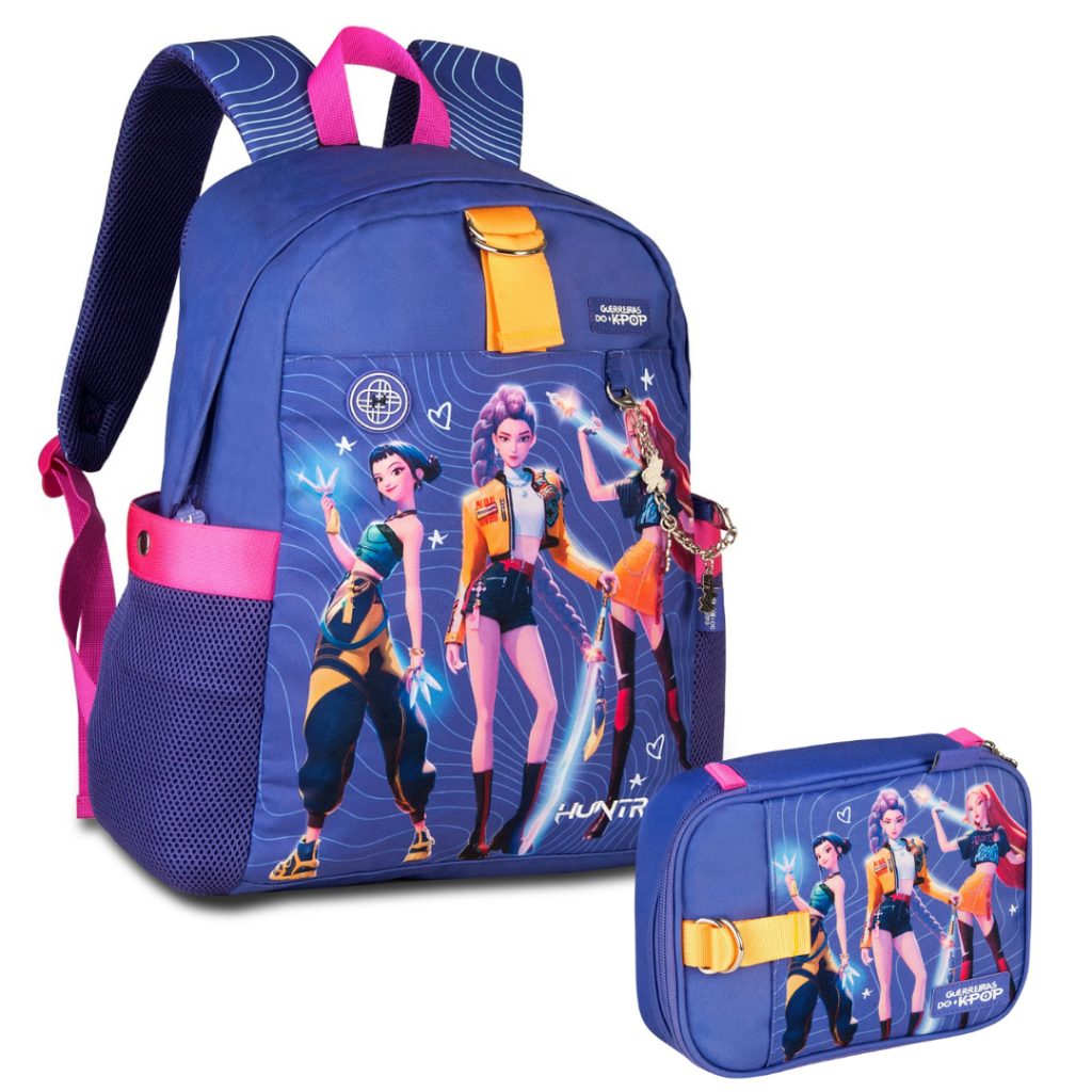 Kit Mochila Guerreiras do K-pop + Estojo Box Escolar Bolsa de Costas Adolescente Juvenil Kpop Musica