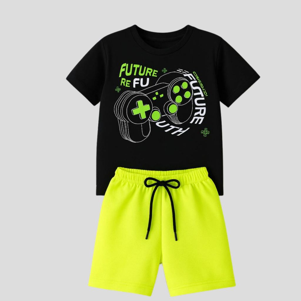 Kit 10 Peças de Roupas Infantil Menino Sortidos 5 Camisas + 5 Bermudas - Kit 5 Conjuntos Algodão