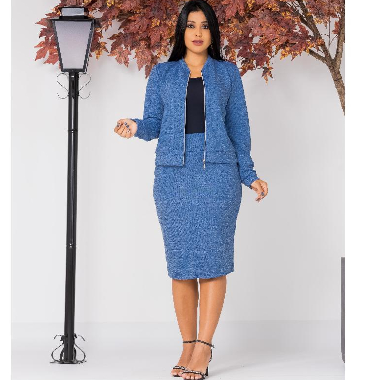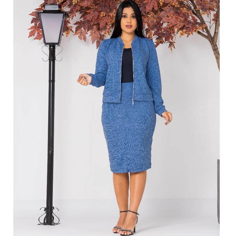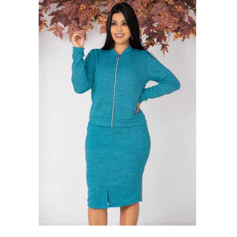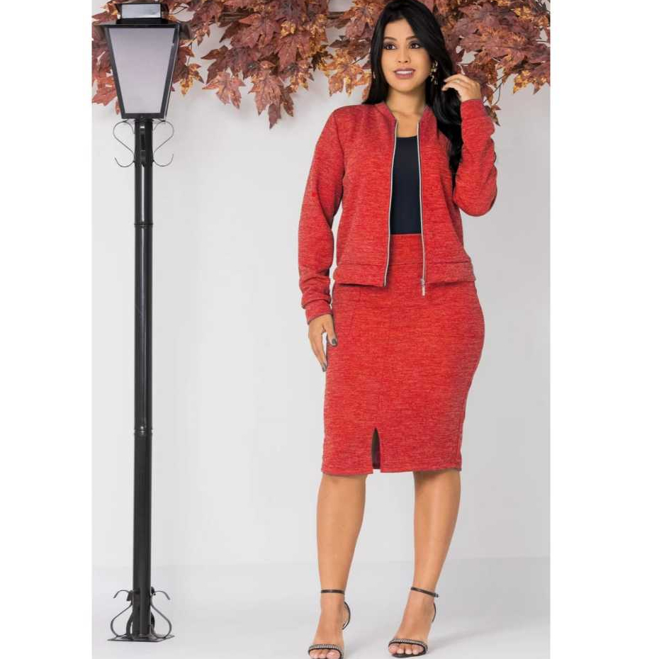 Conjunto Feminina Saia e Blusa Manga Comprida